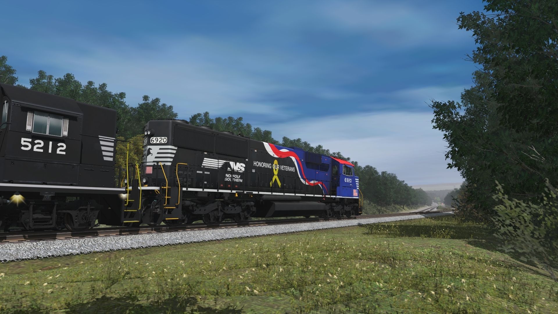 Tags: Trainz Railroad Simulator 2019, NS Horseshoe Curve Modified w Portals 3/1/22, NS Horseshoe Curve Modified w Portals 3/1/22 - Default, NS GP38-2, NS SD60E, NS SD60E Veterans, TTX 89ft TOFC Flatcar