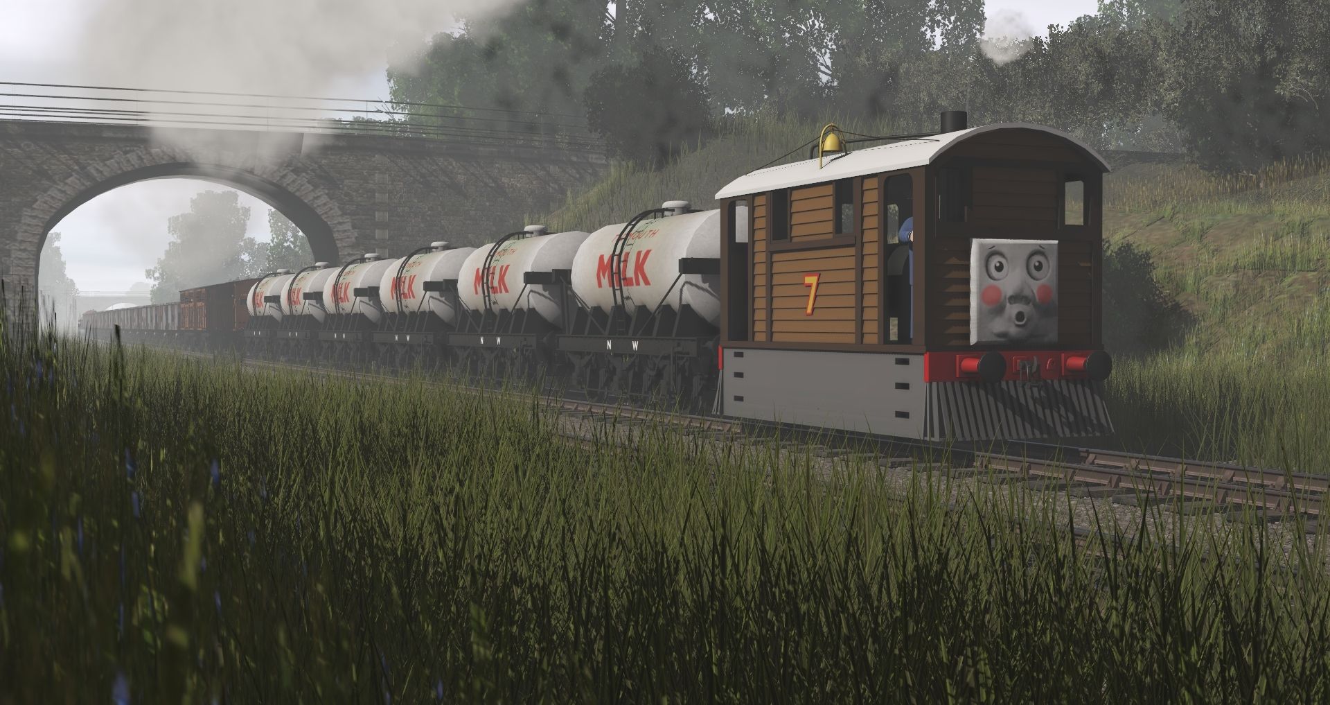 Tags: Trainz Railroad Simulator 2019, Cornish Mainline and Branches - TRS19, Created Session, TTTE - Toby The Tram Engine 2010, TTTE - Donald The Scottish Twin Engine 2010, TTTE - Douglas The Scottish Twin Engine 2010, TRW - GWR 6 Wheel Tanker, TRW - LMS Cattle Van, BR 27T Iron Ore Tippler - Standard #1, 17_5 chassis British Dyestuffs Nitric Acid 10 ton tanker w JAG, 17_5 chassis British Dyestuffs Hydrochloric Acid 10 ton Tanker w JAG, 1 plank wagon unbranded grey w beams JAG ACS, 17_5 chassis BR Banana van w JAG, 17_5 chassis GWR 3 plank 34920 w JAG