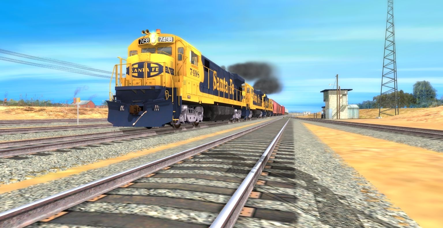Tags: Trainz: A New Era, Clovis Sub West v2 1a, ATSF B36-7, ATSF #314597 3 Bay ACF, ATSF #312138 3 Bay ACF, ATSF #312095 3 Bay ACF, ATSF #311922 3 Bay ACF, ATSF 60ft Boxcar PS (Autoparts), ATSF 60ft Boxcar PS [Late] (Autoparts), TTX Tofc 89flatcar, ATSF Ce-11 Caboose