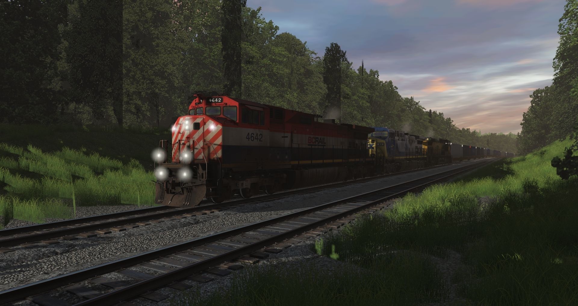 Tags: Trainz Railroad Simulator 2019, Norfolk Southern Birmingham East End Mod., Intermodal Travels, BC Rail C44-9WL 4641-4644, CSX AC4400CW YN2 10-99, UP AC4400CW EX-CNW 6703-6737 TS19, 57ft Spinecar B, 57ft Spinecar C, 57ft Spinecar A