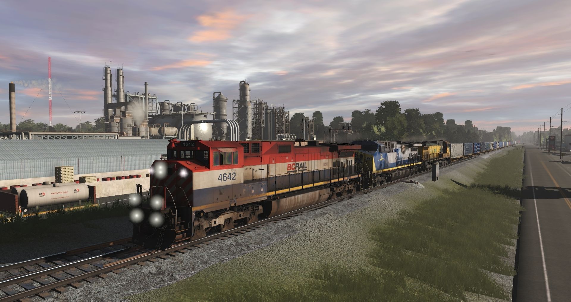 Tags: Trainz Railroad Simulator 2019, Norfolk Southern Birmingham East End Mod., Intermodal Travels, BC Rail C44-9WL 4641-4644, CSX AC4400CW YN2 10-99, UP AC4400CW EX-CNW 6703-6737 TS19, NS GP38-2, NS GP38-2 LH, 57ft Spinecar B, 2bay_h49 41' Coverd Hopper USLX v1, 2bay_h49 41' Coverd Hopper USLX v2, 2bay_h49 41' Coverd Hopper USLX v3, 57ft Spinecar C, 57ft Spinecar A
