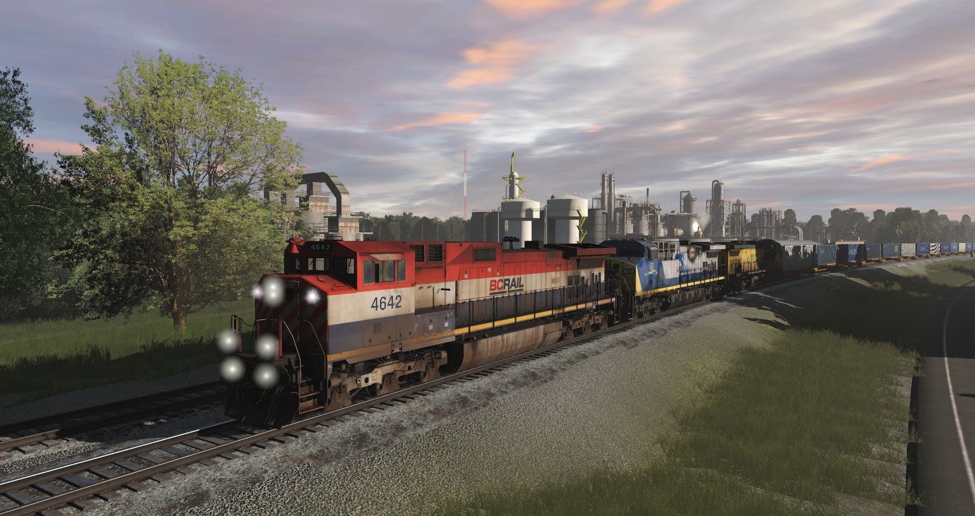 Tags: Trainz Railroad Simulator 2019, Norfolk Southern Birmingham East End Mod., Intermodal Travels, BC Rail C44-9WL 4641-4644, CSX AC4400CW YN2 10-99, UP AC4400CW EX-CNW 6703-6737 TS19, NS GP38-2, NS GP38-2 LH, 57ft Spinecar B, 57ft Spinecar C, 2bay_h49 41' Coverd Hopper USLX v1, 2bay_h49 41' Coverd Hopper USLX v2, 2bay_h49 41' Coverd Hopper USLX v3, 57ft Spinecar A