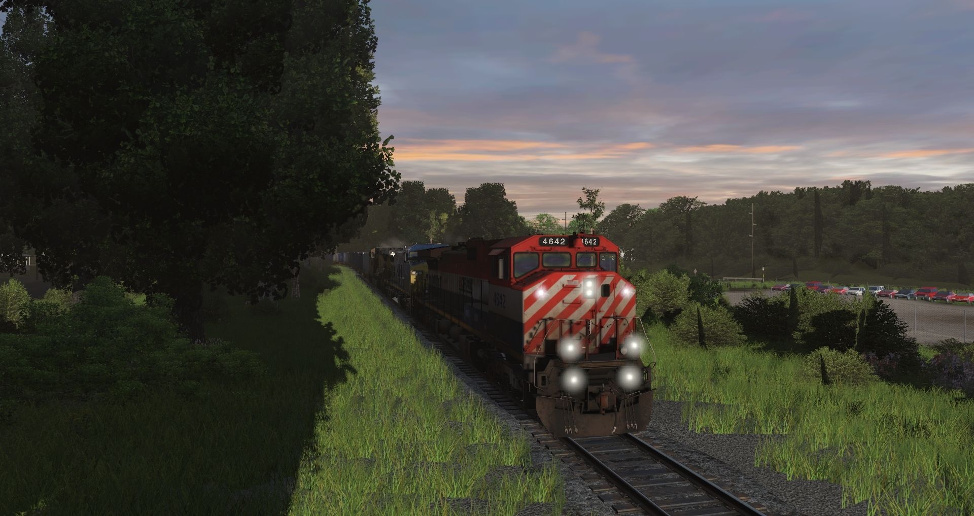 Tags: Trainz Railroad Simulator 2019, Norfolk Southern Birmingham East End Mod., Intermodal Travels, BC Rail C44-9WL 4641-4644, CSX AC4400CW YN2 10-99, UP AC4400CW EX-CNW 6703-6737 TS19, 57ft Spinecar B, 57ft Spinecar C, 57ft Spinecar A