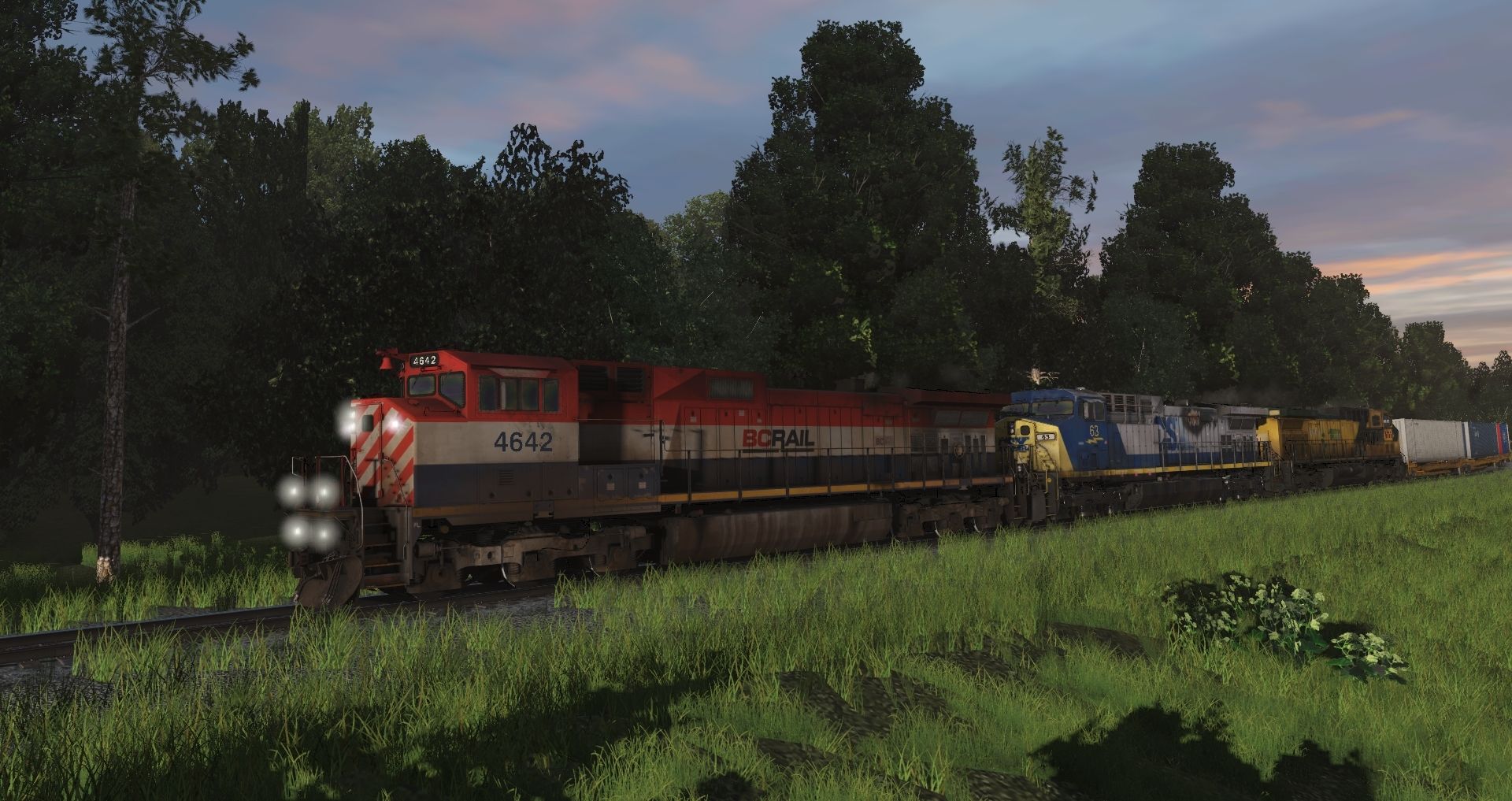 Tags: Trainz Railroad Simulator 2019, Norfolk Southern Birmingham East End Mod., Intermodal Travels, BC Rail C44-9WL 4641-4644, CSX AC4400CW YN2 10-99, UP AC4400CW EX-CNW 6703-6737 TS19, 57ft Spinecar B, 57ft Spinecar C, 57ft Spinecar A