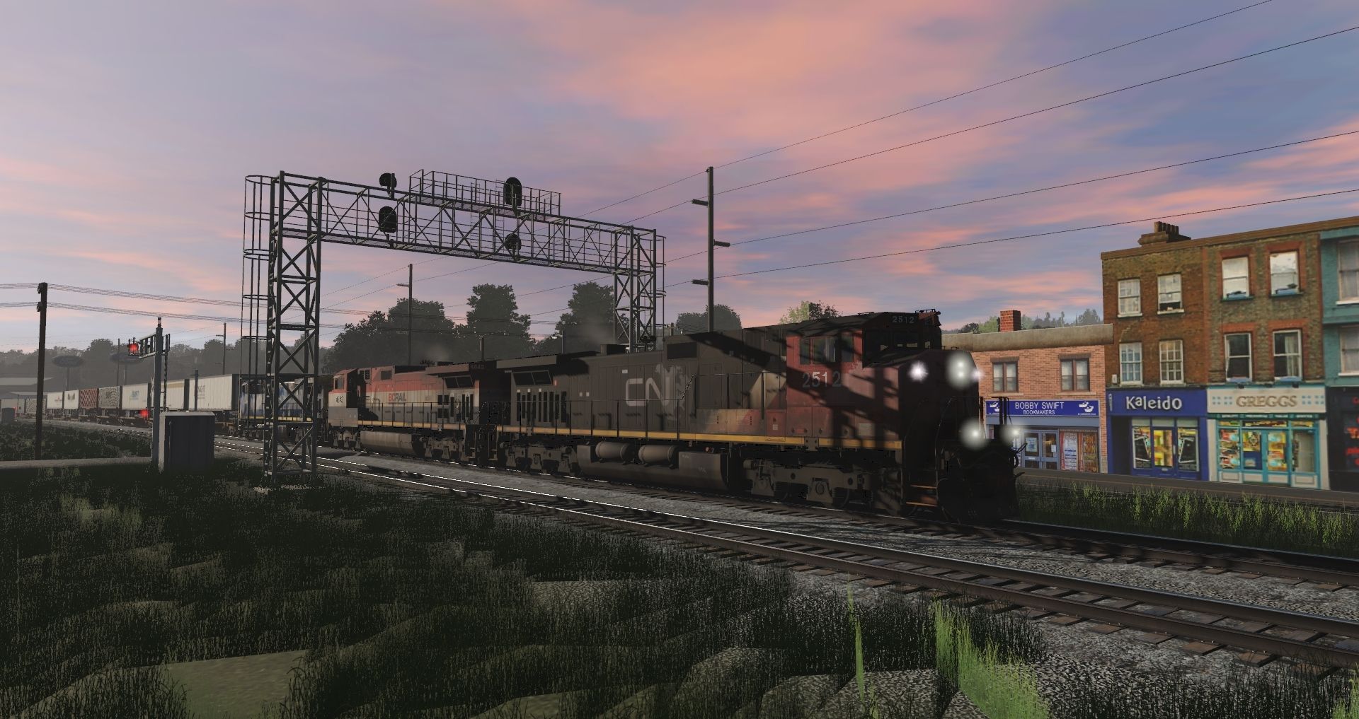 Tags: Trainz Railroad Simulator 2019, Norfolk Southern Birmingham East End Mod., Intermodal Travels, CN C44-9WL 2500-2522, BC Rail C44-9WL 4641-4644, CSX AC4400CW YN2 10-99, EMD SD70ACe Norfolk Southern, 57ft Spinecar B, 57ft Spinecar C, 57ft Spinecar A, 50ft ACF Hopper ACFX 27861, 57ft Tanker DBUX 301132, Bulkhead Flatcar UP 62 ft, Bulkhead Flatcar CN 62 ft