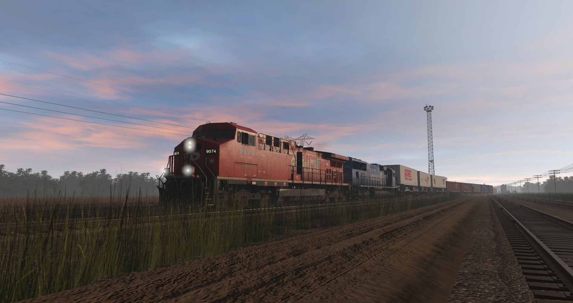 Tags: Trainz Railroad Simulator 2019, Terminal RR, Terminal RR - Default, CP AC4400CW 9500-9582 TS19 1, CR SD70 Patched V3, 57ft Spinecar A, 57ft Spinecar B, 57ft Spinecar C