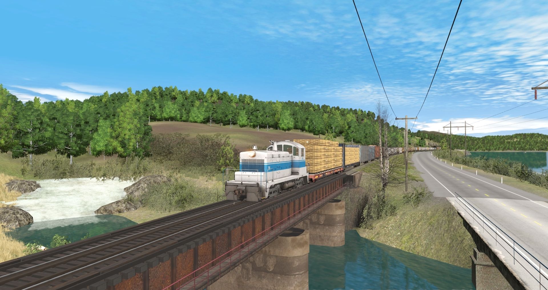 Tags: Trainz Railroad Simulator 2019, Eagle River Railway 1, JRLX SW1 #718, ERSX SD7 low hood(ex-BN), HIRY B40-8 #5930 (ex CSX), HIRY B40-8 #5931 (ex CSX), HTRX 60ft flatcar, JRLX 62ft Bulkhead, GBRX ex-GN 60ft woodchip gondola, SP 60Ft.9In. woodchip gondola, ACFX #47409 3 Bay ACF, ACFX #27710 3 Bay ACF, ADMX Trinity 3 Bay Hopper
