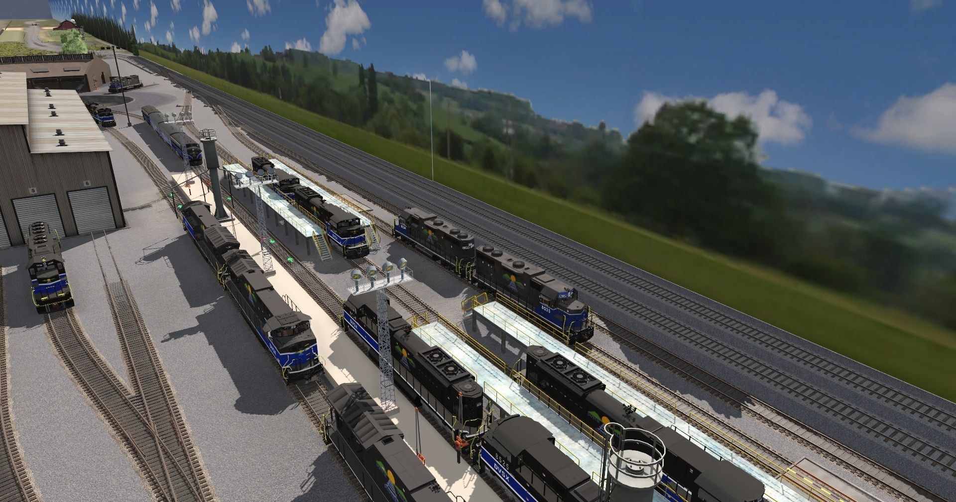Tags: Trainz Railroad Simulator 2022, DVS HO Layout, Default, JTN GP38-2 Dutch Valley Southern No AC, DVS SD40_2 3238, DVS SD70M-2, DVS F7A #202, DVS F7B #203, DVS F7B #201, DVS F7A #200, MP15DC undec 2, MP15DC undec 2, DVS ES44AC Tier 4 Roof Light, DVS SD40_2 3229