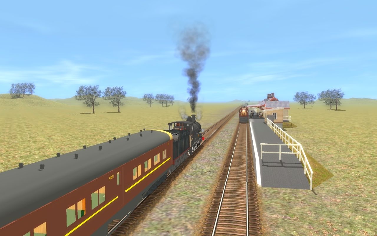 Tags: Trainz: A New Era, NSWGR Bogan Creek Livestock, NSWGR Bogan Creek Livestock - Default, NSWGR c32, NSWGR 49 class, NSWGR 12 wheel TBC 1st class car, NSWGR 12 wheel TAM sleeper car, NSWGR Wampo Tender RL TS12 SP1 HF4, NSWGR 12 wheel MCE composite car, NSWGR MHO Brake Van, NSWGR BCW Cattle Wagon, NSWGR BSV Sheep Wagon, NSWGR PHG Guards Van - BLack