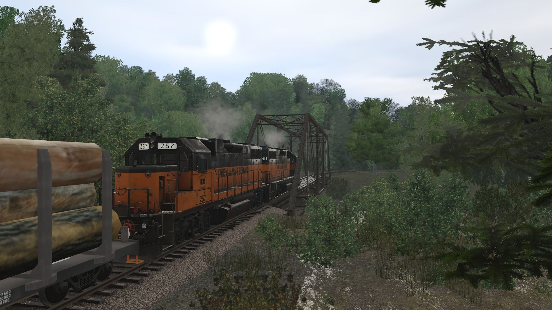 Posted by: billm001 | Posted:2022-03-15 23:32:14 Caption: Tags: Trainz Railroad Simulator 2019, Pennsylvania & Berwind RR edited bill Feb 2022, Default, PB GP38-2, Logs 50ft Clinch