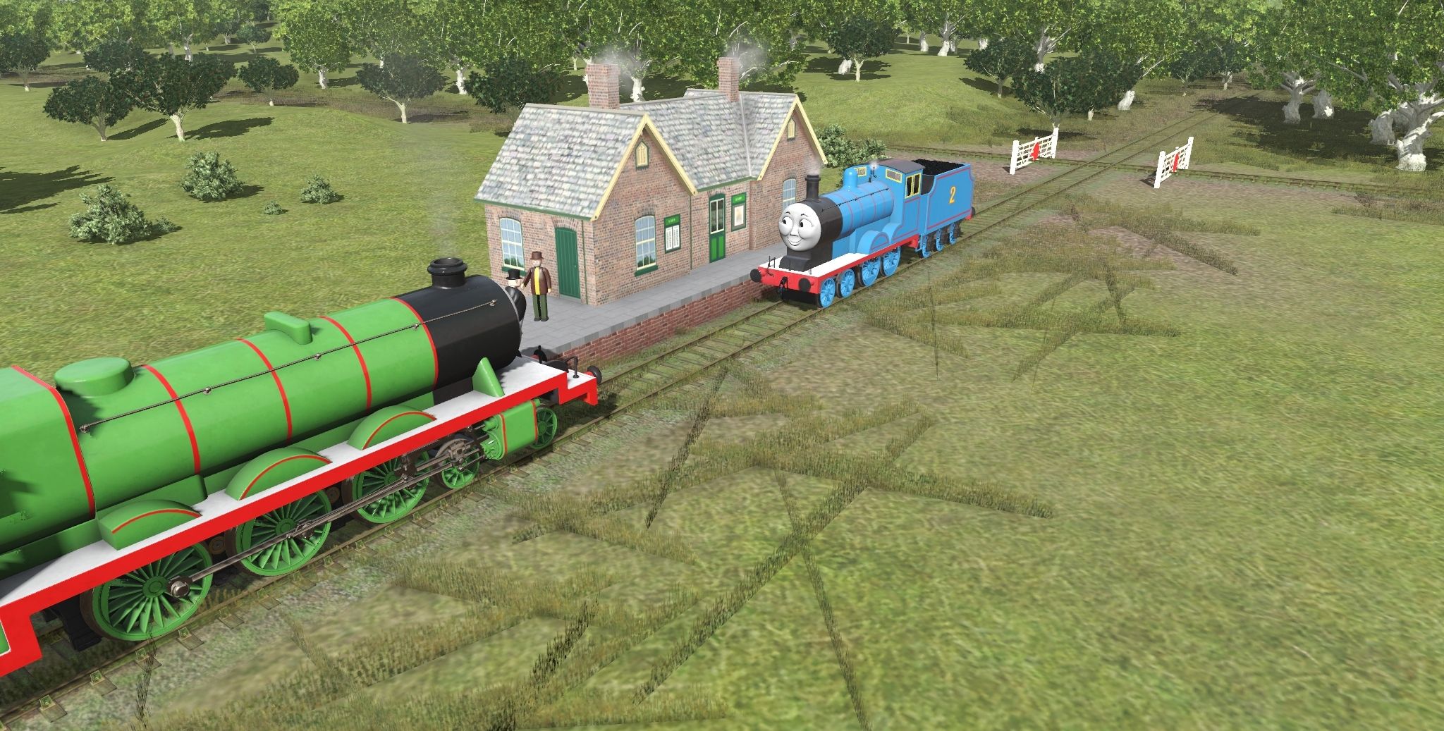 Tags: Trainz Railroad Simulator 2019, Haunted Henry Route, Default, Engieman's - Edward The Blue Engine (TVS) TS19, SudrianRails - Henry the Green Engine (New Shape), SudrianRails - Henry's Tender, TW3D - Handcar, Engieman's - Edward's Tender (TVS) TS19