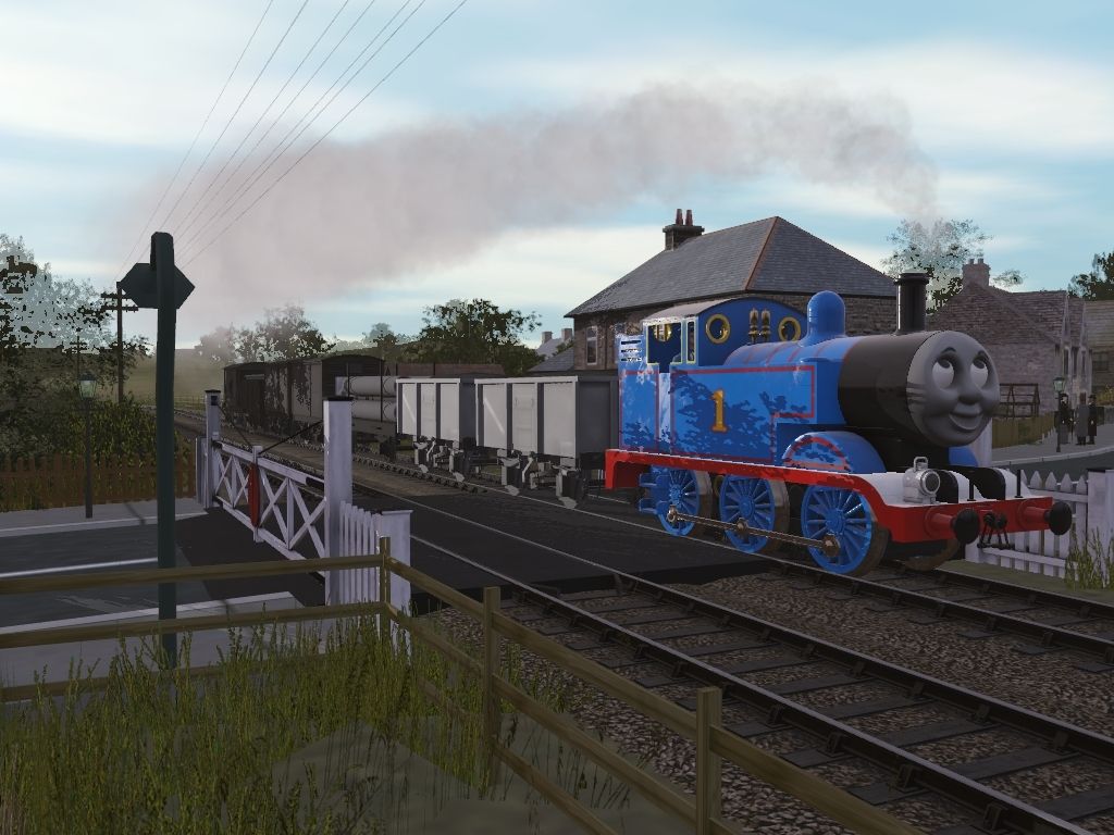 Tags: Trainz Railroad Simulator 2019, IoS - The Kellsthorpe Extension, S3 - Thomas The Tank Engine, BR Freight MCO Grey, TRW - SR Pillbox Conflat (4 Poles), Troublesome Box Van 9 (Gray), TRW - 7 Plank Wagon, Sodor Brake Van Type 1 - Grey