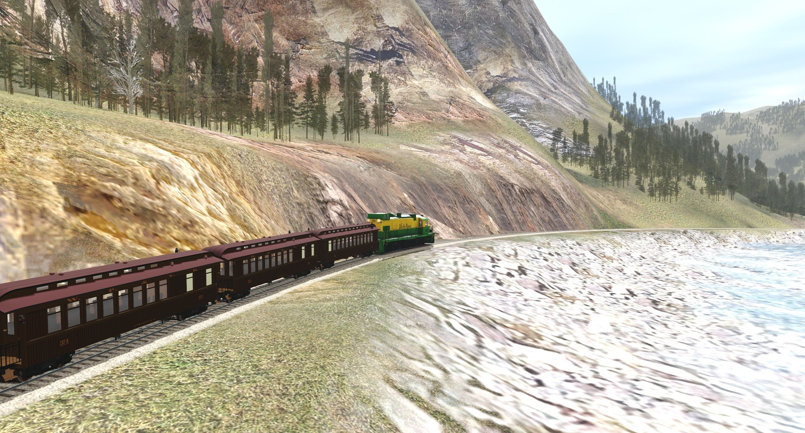 Tags: Trainz Railroad Simulator 2022, Animas Canyon, Default, WP&Y DL535E, WPY passenger car, WPY parlor 374 (afer 1924), WPY coach 222 (afer 1924), WPY baggage 201 (after 1924)