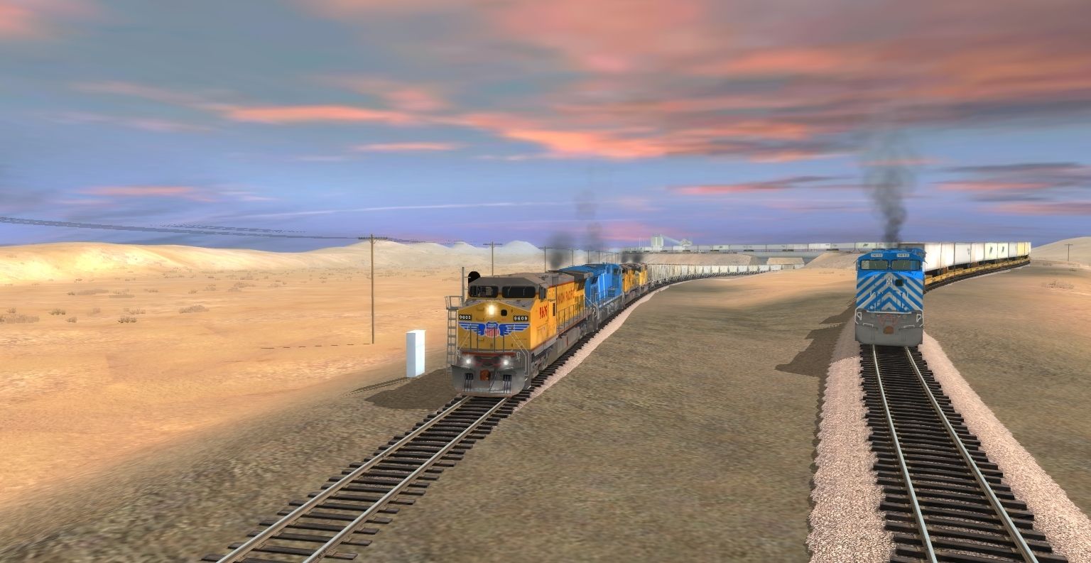 Tags: Trainz: A New Era, Desert Wood, UP C44-9W Lightning Stripe, CEFX AC4400CW #1012, CEFX AC4400CW #1010, CEFX AC4400CW #1006, UP C44-9W, UP SD70M, BNSF H3 Dash 9-44CW, BNSF ET44C4, GE C40-8 UP (EX-CNW), UP Trinity 3 Bay Hopper, TTX Tofc 89flatcar