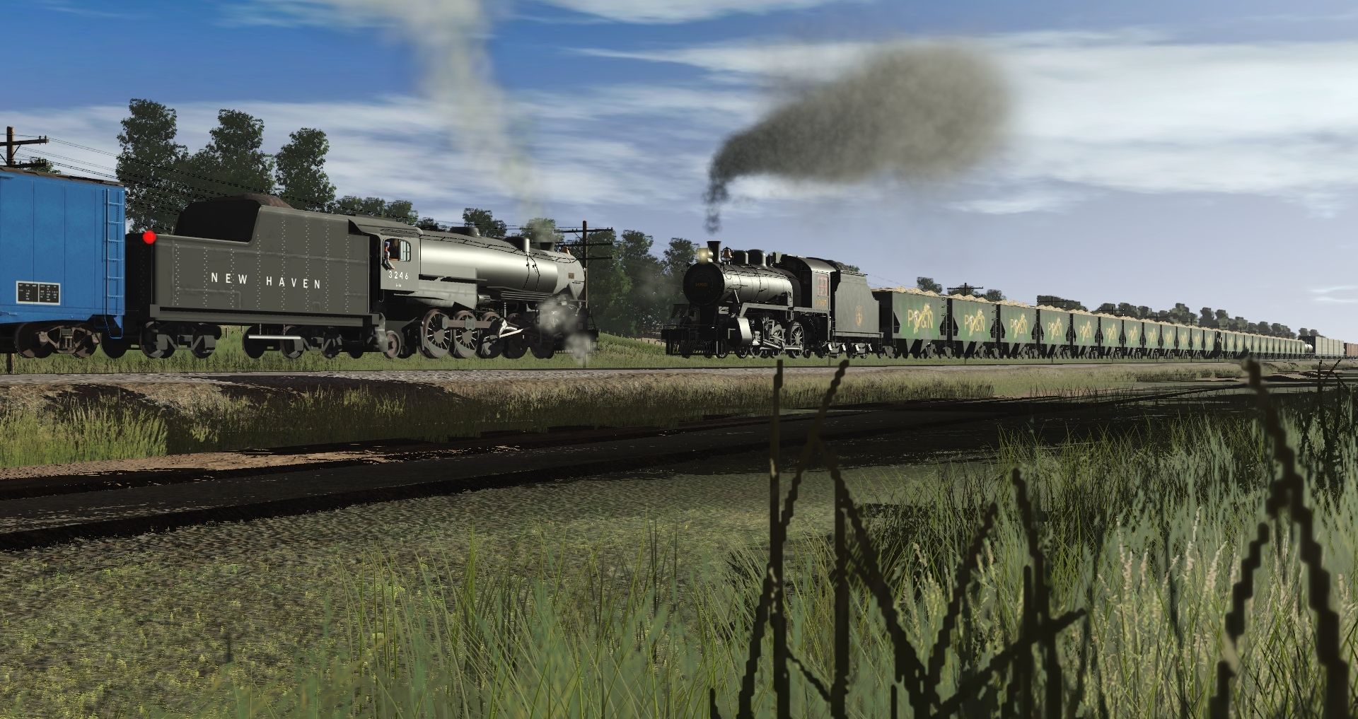 Tags: Trainz Railroad Simulator 2019, Rural Midwestern Scene (TRS19), Default, NH Class W-11A (L-1A) Tender alt, NH Class L-1a 2-10-2 early Updated, DAR D10h/k High Headlight, Invisible loco, DAR D10 Tender, TUME-300592-Flatcar-MILW, TUME-300556-Covered-Hopper-IC, TUME-300529-Caboose-MILW, Hopper PON 2 Bay v2, TUME-300583-Centerbeam-WP, GATX Oil Tanker