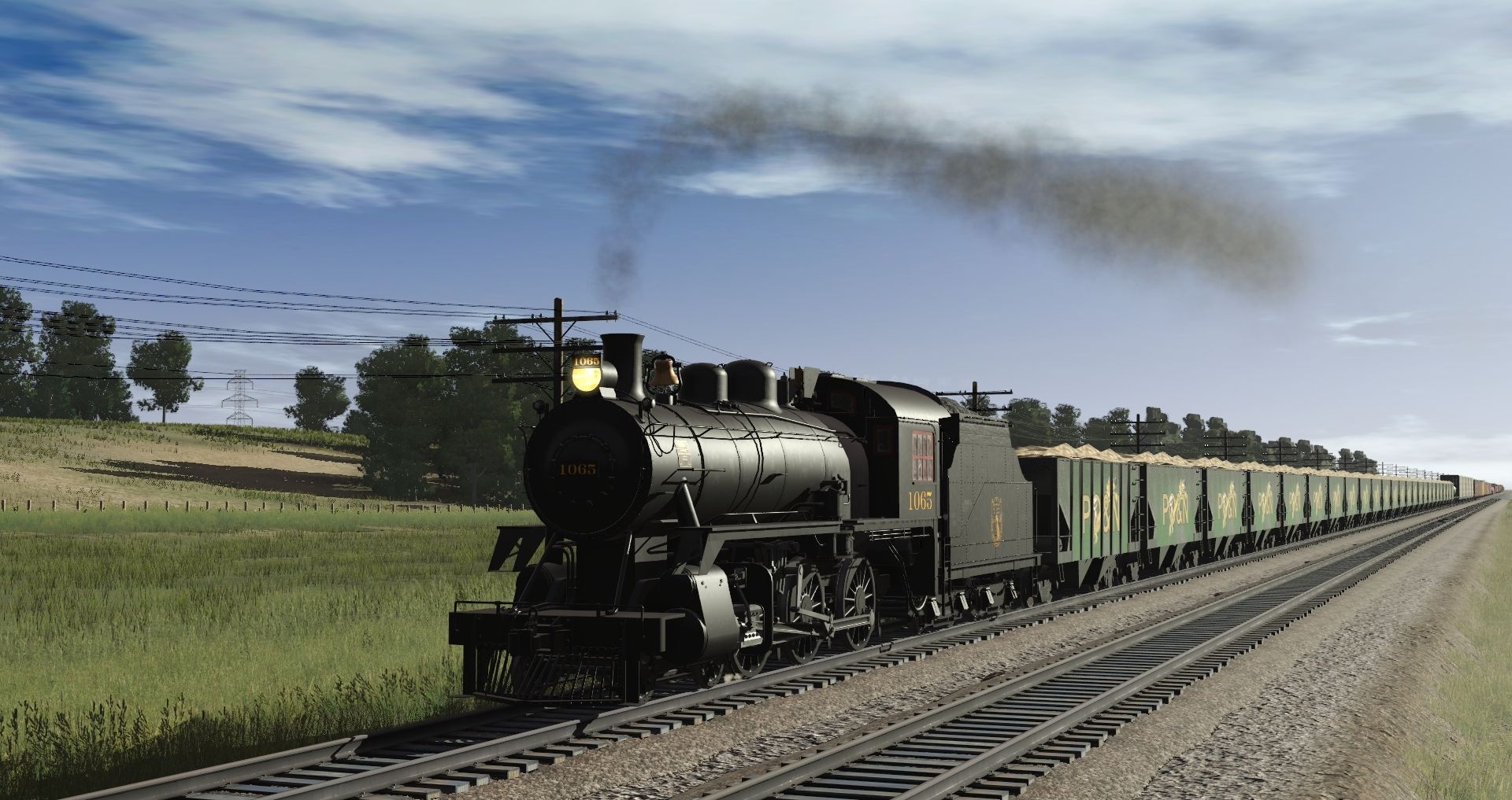 Tags: Trainz Railroad Simulator 2019, Rural Midwestern Scene (TRS19), Default, DAR D10h/k High Headlight, Invisible loco, DAR D10 Tender, Hopper PON 2 Bay v2, TUME-300583-Centerbeam-WP, GATX Oil Tanker, TUME-300501-Boxcar-50ft-MILW, TUME-300502-Boxcar-50ft-MILW, TUME-300503-Boxcar-50ft-MILW, TUME-300504-Boxcar-50ft-MILW, TUME-300506-Boxcar-50ft-MILW
