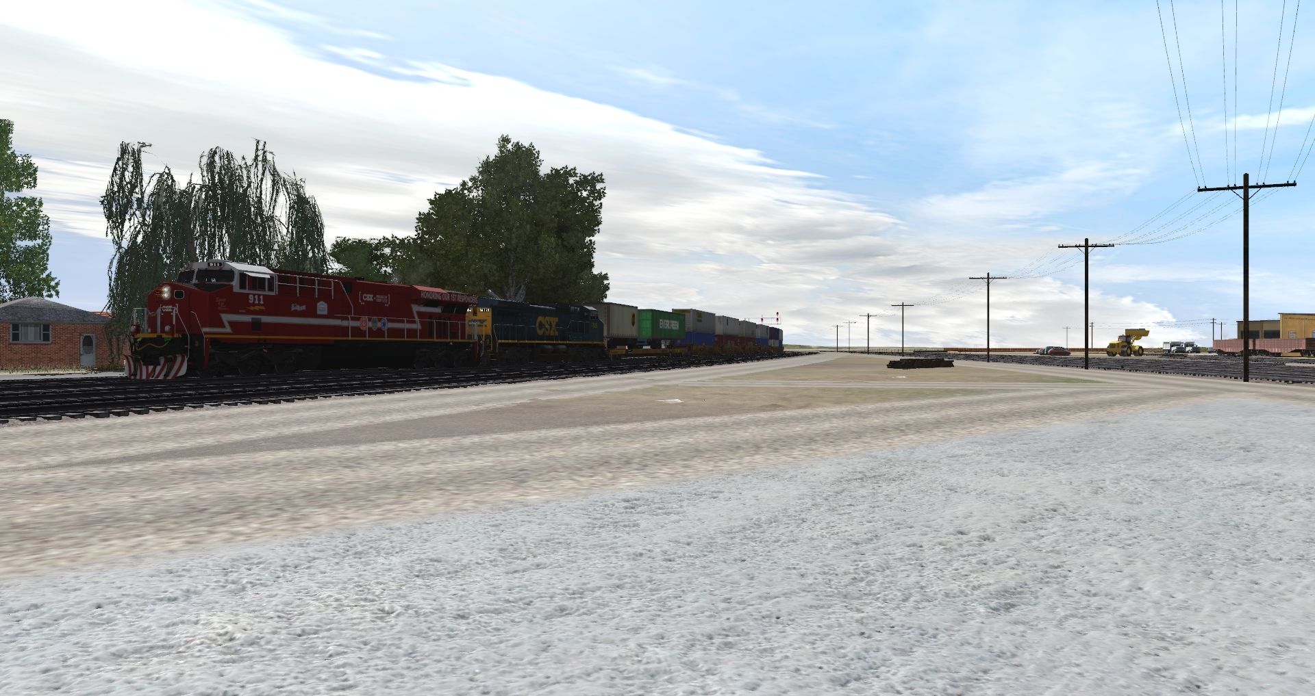 Tags: Trainz Railroad Simulator 2019, TRS19 - NS Sandusky District - Stage 3, CSXT 911, CSX C40-8W yn3, TTX Patched 89ft TOFC Flatcar, TTX weathered 53 Husky Stack