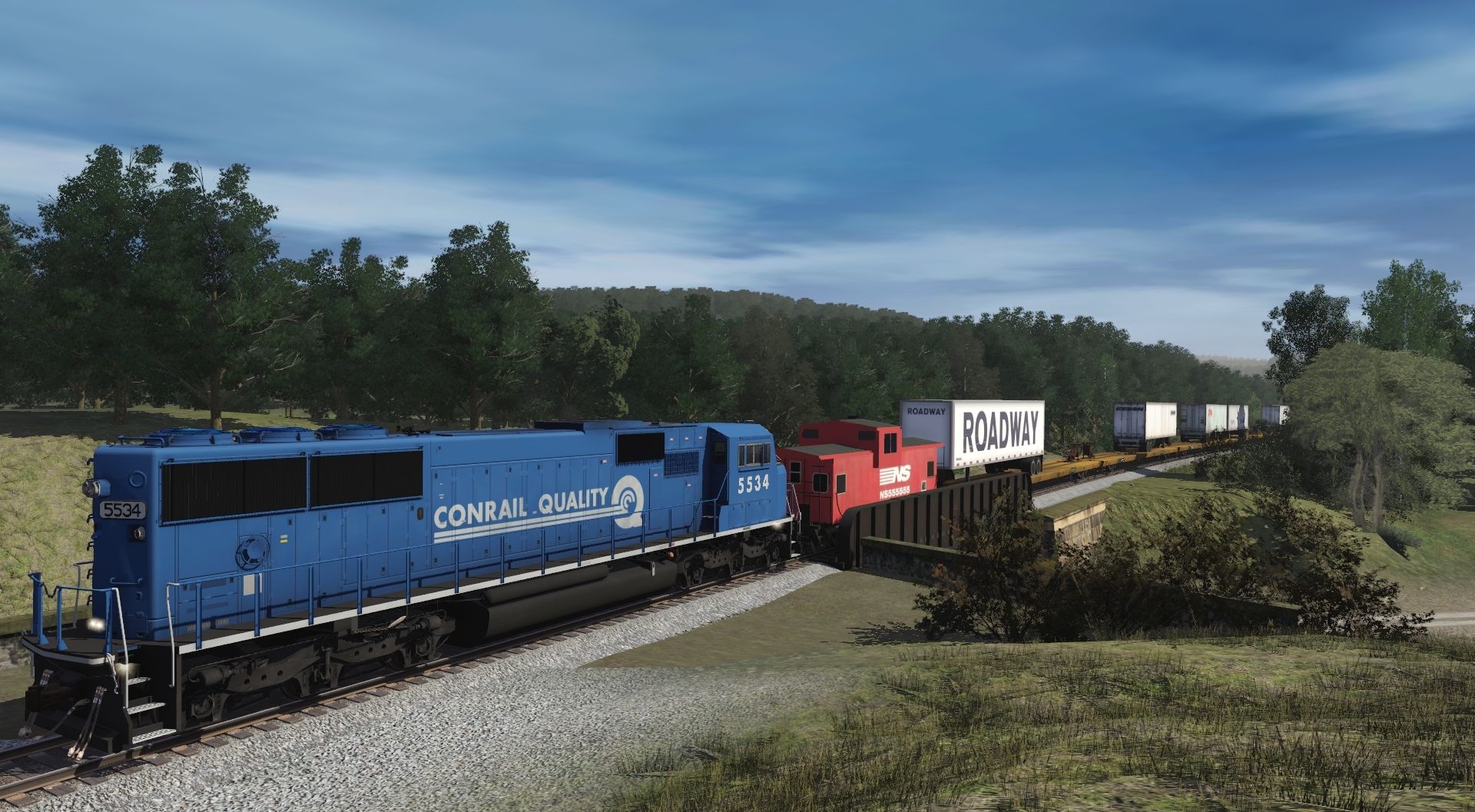 Tags: Trainz Railroad Simulator 2019, NS Horseshoe Curve Modified w Portals 3/20/22, NS SD60E, CR SD60M, CR SD70MAC, NS Caboose 555555, TTX 89ft TOFC Flatcar, Spinecar E Unit Dirty, Spinecar C Unit Dirty, Spinecar B Unit Dirty, Spinecar D Unit Dirty, Spinecar A Unit Dirty, PRR 100 Ton Hopper
