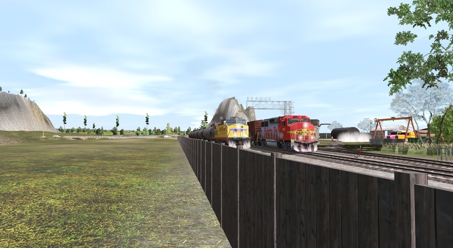 Tags: Trainz Railroad Simulator 2019, test2.1, test2.2 w/ tanker and tug, ATSF GP60M, Union Pacific UP Dash 9 #9571, TUME-71402175-SD40-2-BN, Piper Cub J-3 O'Brien's Flying Circus Startup, BAPC P-S 50_6ft Boxcar, BCNE 4000cf Rotary Gondola R1, UTLX LPG Tank (Modern), BKTY 50ft Boxcar FMC, BNFE Orange PCF 57' Reefer, BNSF Centerflow Hopper #403724