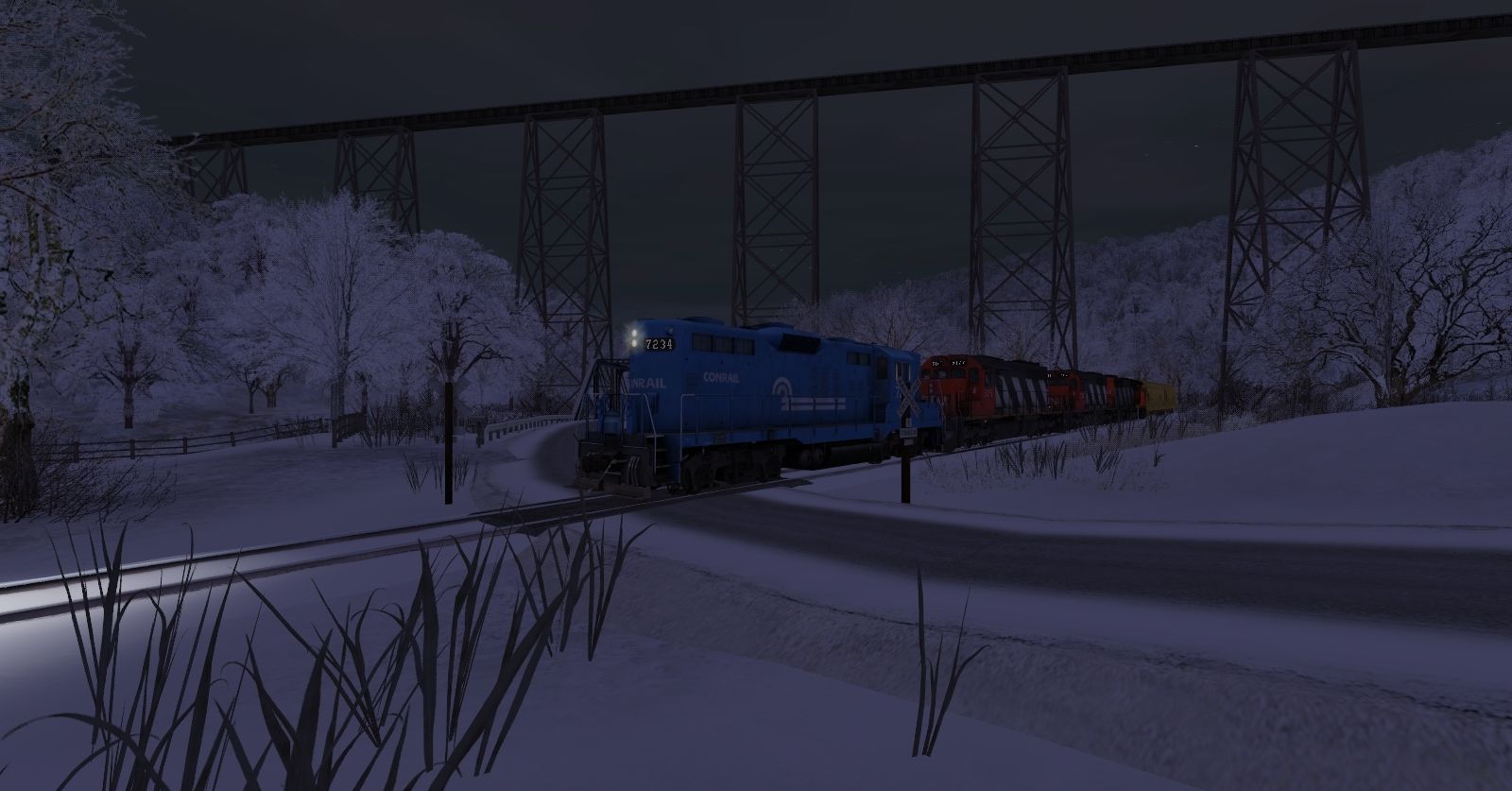 Tags: Trainz: A New Era, Monongahela & Western Pennsylvania edit 2, The early years of Conrail, CR GP9 blue (former PRR), CN SD40 ph2 no dyn, CN GP40-2W 9633-9667, CNW ACF Centerflow 4 Bay long hatch, 50' Boxcar P&LE 60's, 50ft Boxcar ATSF 48781, 50ft Boxcar CCR 7056, 40ft Cov Hop ATSF 350232, 40ft Cov Hop ATSF 192890, 40ft Cov Hop ATSF 350304, 40ft Cov Hop ATSF 87126