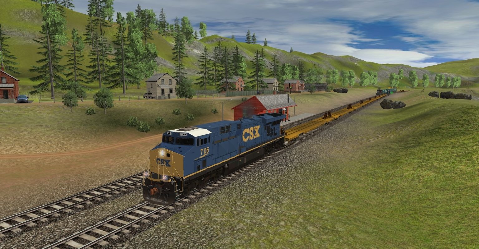 Tags: Trainz: A New Era, Kickstarter County, CSX ES44AH YN3, EMD SD40-2 NS (Ex-CR), Woodchip Norfolk Southern 196858 ant, TTX Patched 89ft TOFC Flatcar