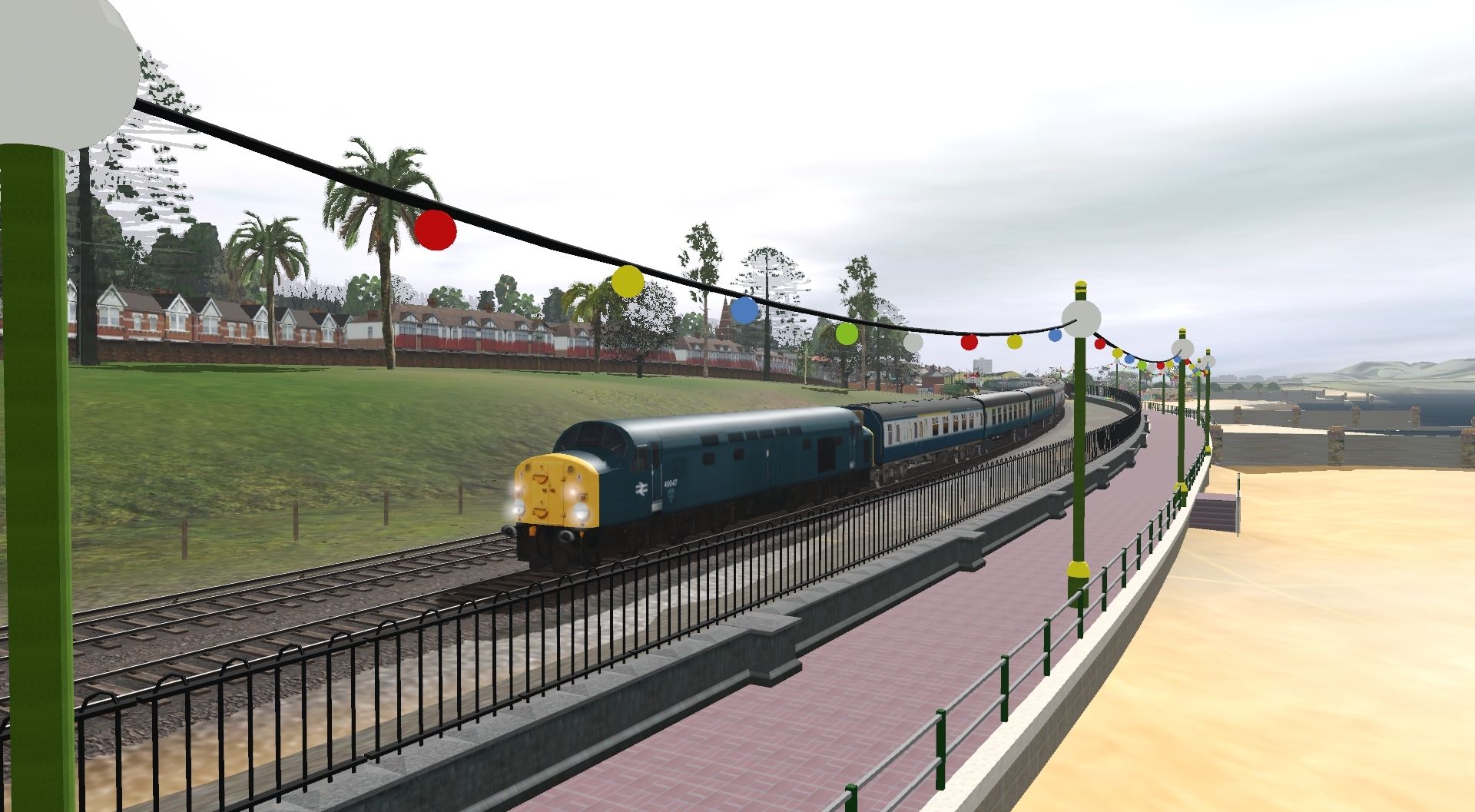 Tags: Trainz Railroad Simulator 2019, ADL Railroad 5 SOUTHv1 030, ADL Railroad 5 SOUTHv1 030 - Default, BR Class 40 40047 blue, BR Mk1 BCK Blue, BR MK1 FK blue & Grey, BR Mk1 RUO Blue, BR Mk1 RKB Blue, BR Mk1 SO Blue & Grey ScotRail (commonwealth), BR MK2C SO Blue & Grey (revised), BR Mk1 SK Blue, BR MK2C BSO Blue & Grey (revised), BR Freight CAR Brake Bauxite, BR Mk1 GUV Blue