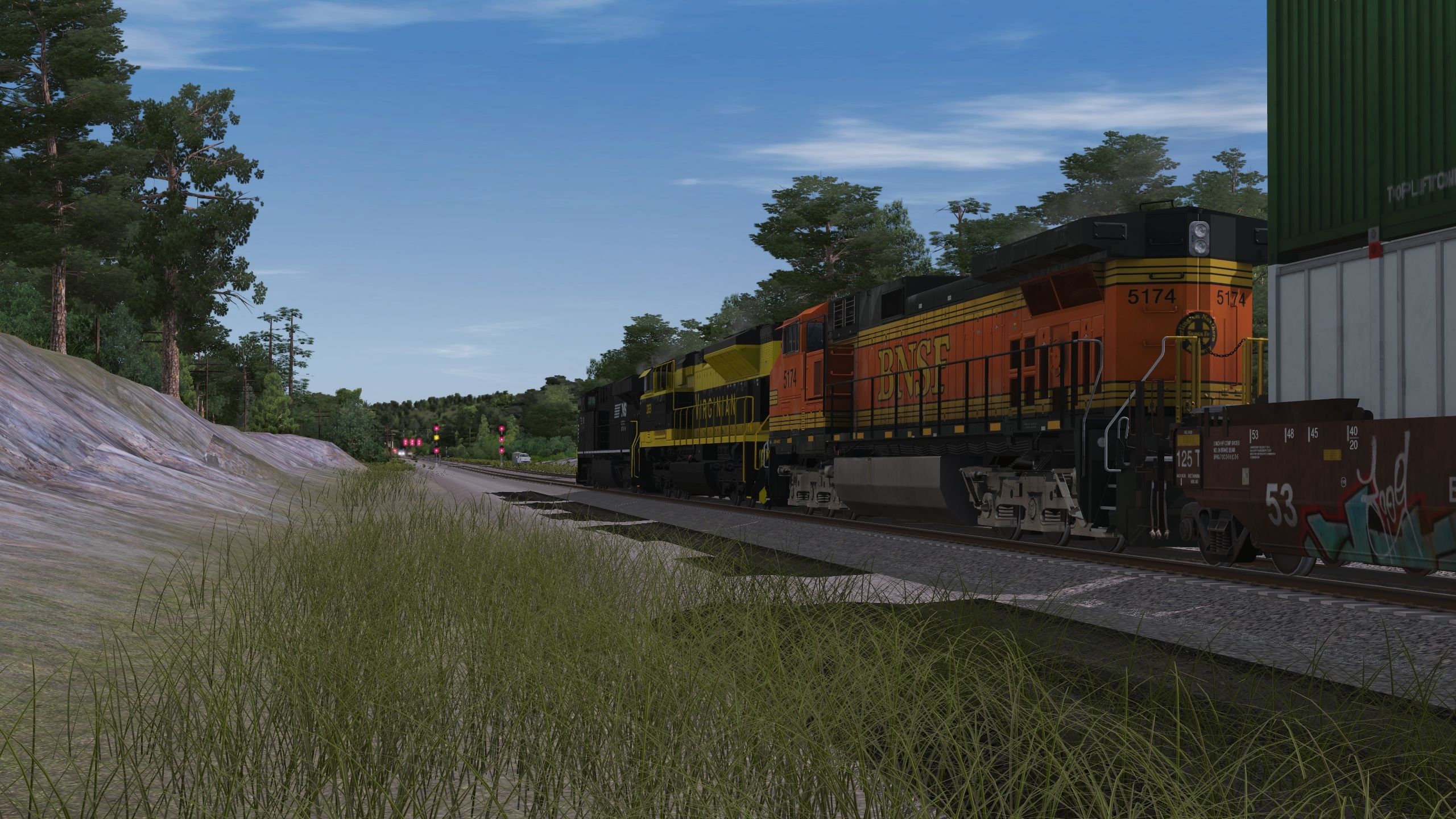 Tags: Trainz Railroad Simulator 2022, Cascade Pass II, Default, BNSF C44-9W h2 5000s, NS SD70ACe VGN Heritage 1069, NS ES44AC, AMTK P42DC ph V, GE B40-8 BNSF Heritage I UPDATE, BNSF ES44C4 6500-7199, BNSF ES44C4 7950-8399, BNSF 53 Maxi-IV C (weathered), BNSF 53 Maxi-IV A (weathered), BNSF 53 Maxi-IV B (weathered), 53ft DTTX Wellcar Weathered (Single)