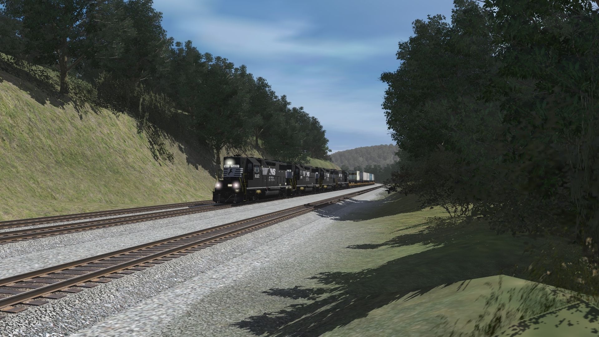 Tags: Trainz Railroad Simulator 2019, NS Horseshoe Curve Modified w Portals 3/20/22, Default, NS GP38-2, NS SD60E, TTX 89ft TOFC Flatcar, Spinecar B Unit Dirty, Spinecar E Unit Dirty, Spinecar D Unit Dirty, Spinecar C Unit Dirty, Spinecar A Unit Dirty, Caboose Norfolk Western 530533, 2Bay ACF CovHopper N C & St L #, 2Bay ACF CovHopper MONON CIL 2 #
