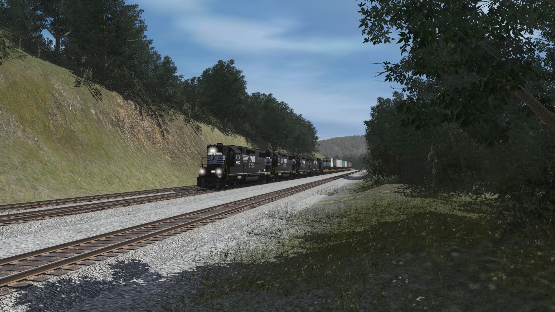Tags: Trainz Railroad Simulator 2019, NS Horseshoe Curve Modified w Portals 3/20/22, Default, NS GP38-2, NS SD60E, TTX 89ft TOFC Flatcar, Spinecar B Unit Dirty, Spinecar E Unit Dirty, Spinecar D Unit Dirty, Spinecar C Unit Dirty, Spinecar A Unit Dirty, Caboose Norfolk Western 530533, 2Bay ACF CovHopper N C & St L #, 2Bay ACF CovHopper MONON CIL 2 #