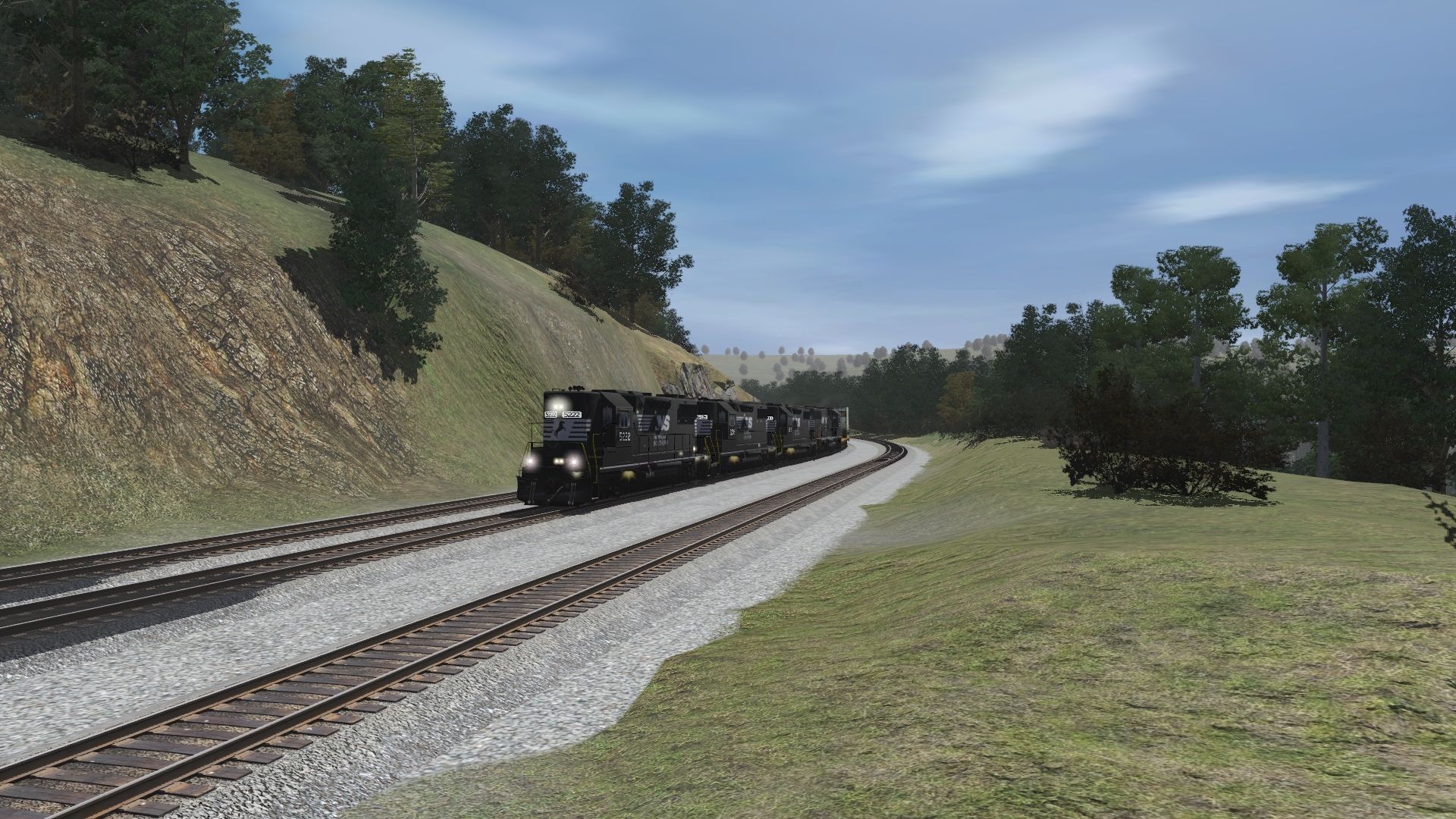 Tags: Trainz Railroad Simulator 2019, NS Horseshoe Curve Modified w Portals 3/20/22, Default, NS GP38-2, NS SD60E, TTX 89ft TOFC Flatcar, Spinecar B Unit Dirty, Spinecar E Unit Dirty, Spinecar D Unit Dirty, Spinecar C Unit Dirty, Spinecar A Unit Dirty, Caboose Norfolk Western 530533, 2Bay ACF CovHopper N C & St L #, 2Bay ACF CovHopper MONON CIL 2 #