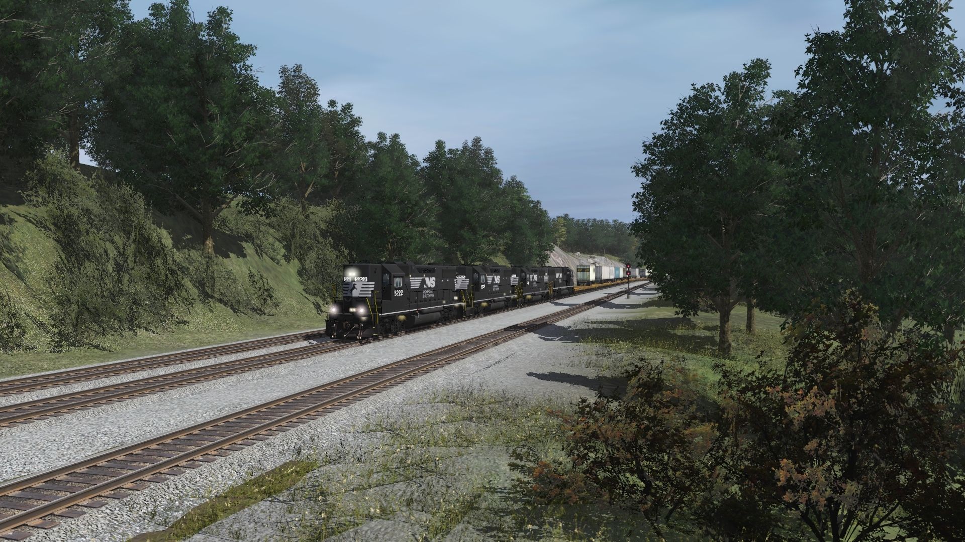 Tags: Trainz Railroad Simulator 2019, NS Horseshoe Curve Modified w Portals 3/20/22, Default, NS GP38-2, NS SD60E, TTX 89ft TOFC Flatcar, Spinecar B Unit Dirty, Spinecar E Unit Dirty, Spinecar D Unit Dirty, Spinecar C Unit Dirty, Spinecar A Unit Dirty, Caboose Norfolk Western 530533