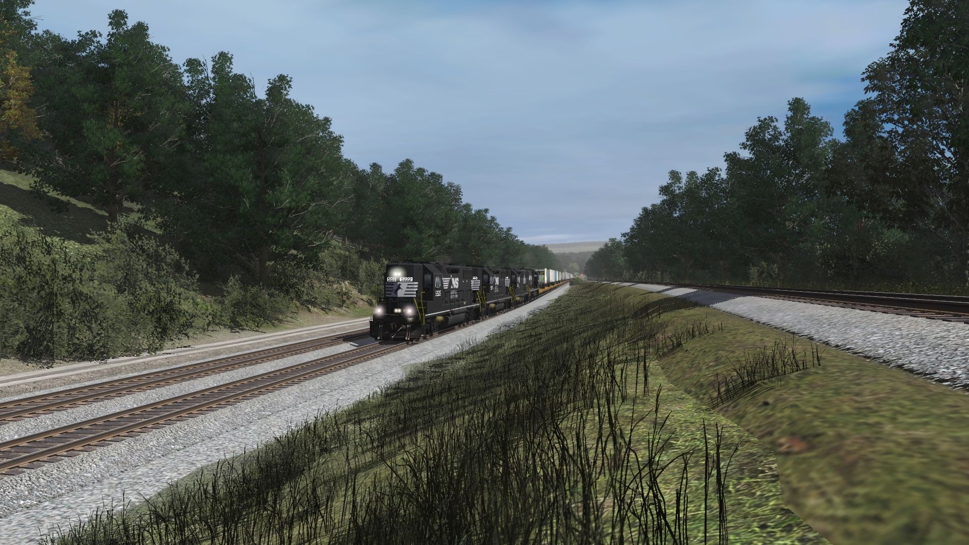 Tags: Trainz Railroad Simulator 2019, NS Horseshoe Curve Modified w Portals 3/20/22, Default, NS GP38-2, NS SD60E, TTX 89ft TOFC Flatcar, Spinecar B Unit Dirty, Spinecar E Unit Dirty, Spinecar D Unit Dirty, Spinecar C Unit Dirty, Spinecar A Unit Dirty, Caboose Norfolk Western 530533