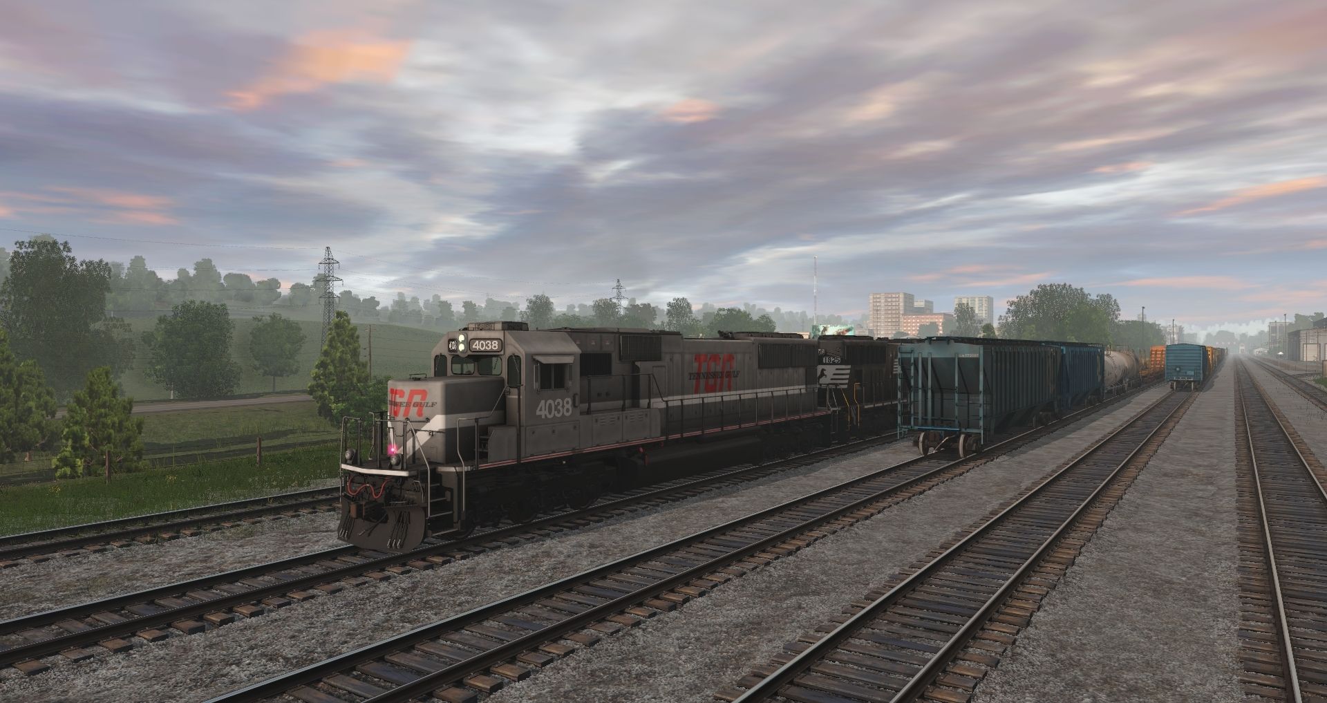 Tags: Trainz Railroad Simulator 2019, Tidewater Point Rail Mod., Tidewater Point Rail Mod. - Default, TGR SD70 V2, NS SD70ACC, FMRR U33C, GN Trinity 3 Bay Hopper 4 #172387, GN Trinity 3 Bay Hopper 4 #172388, GATX 23000 gal Funnel-Flow tank car white, 53ft DTTX Wellcar (Single), GATX 20800 gal tank car Thiele Weathered, ELS 50_6ft Boxcar #101668, 53ft DTTX Wellcar Weathered (Single), Frisco 2 Bay Hopper ACF 2971