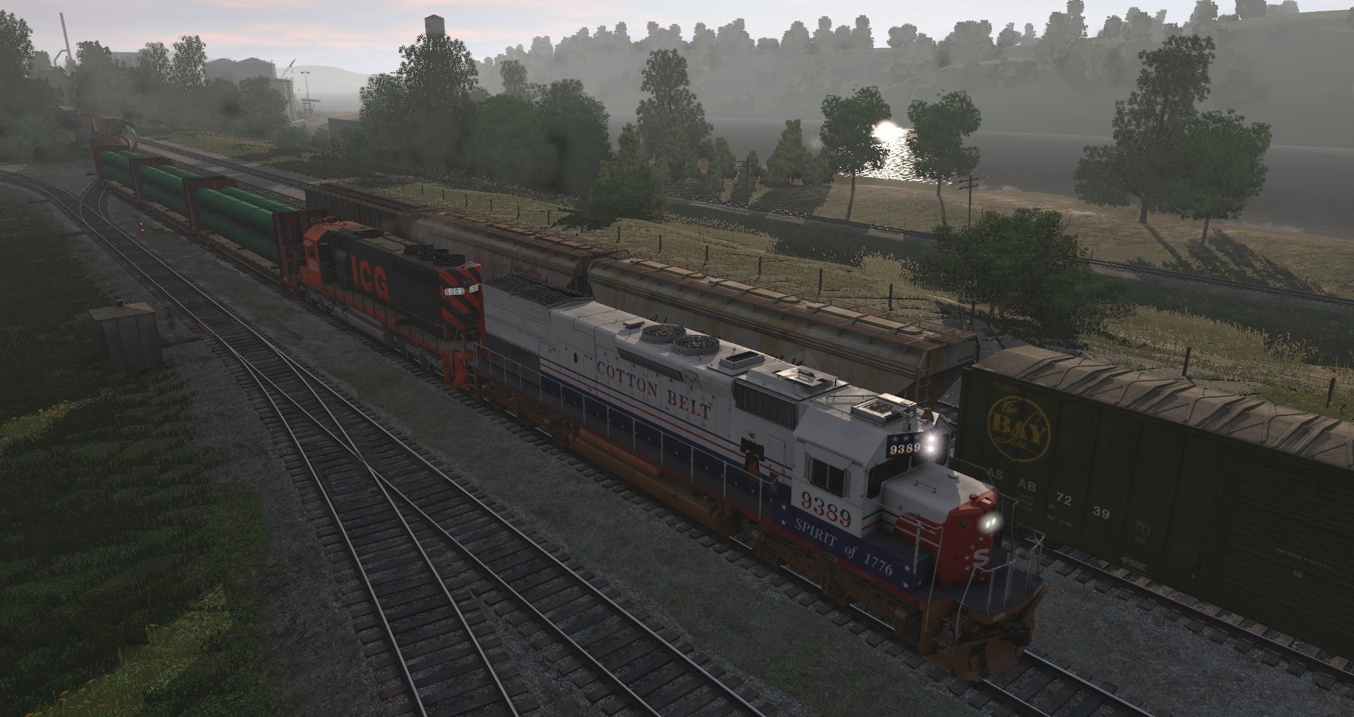 Tags: Trainz Railroad Simulator 2019, Tidewater Point Rail Mod., Tidewater Point Rail Mod. - Default, SSW Bicentennial SD45T-2, ICG SD40, FMRR U33C, JRPX GP7, NS SD70ACC, TGR SD70 V2, ASAB 50ft Boxcar FMC, BCI 85065 ACF Centerflow 3 Bay long hatch, 73ft Centerbeam NOKL, Custom ACF 3 Bay - Winchester & Western, NP Trinity 3 Bay Hopper