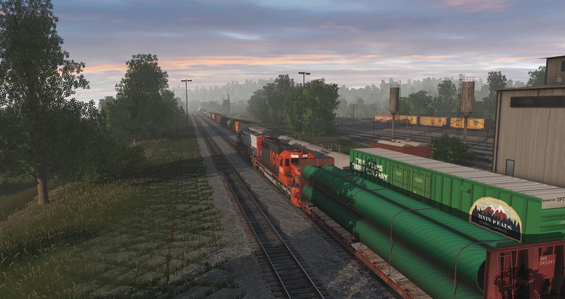 Tags: Trainz Railroad Simulator 2019, Tidewater Point Rail Mod., Tidewater Point Rail Mod. - Default, ICG SD40, SSW Bicentennial SD45T-2, FMRR U33C, JRPX GP7, NS SD70ACC, TGR SD70 V2, BNSF 62Ft. Bulkhead, TPTC Boxcar HiCube 60ft TWIN PEAKS 2A, 52ft Bulkhead CTRR 1, CSX Intermodal 48 Husky Stack, TILX 20800 gal tank car OMYA