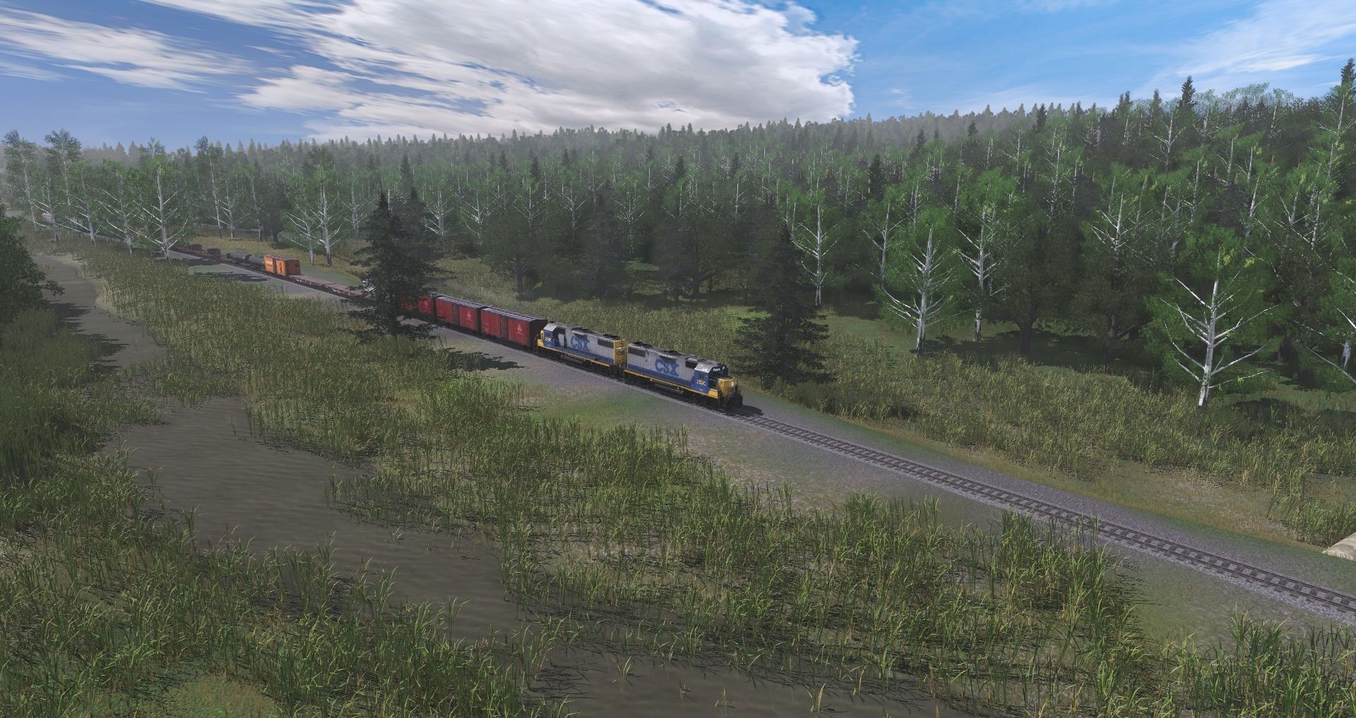Tags: Trainz Railroad Simulator 2022, Upstate New York, Default, CSX GP38-2 YN-2 (ex-SCL), Custom 40' Boxcar - #1, Custom 40' Boxcar - #6, BNSF Flat car 917504, Custom 40' Boxcar - #5, Tanker 40ft UTLX #, Bogie Log Wagon Short Knuckle, Custom 40' Boxcar - #8, Custom 40' Boxcar - #3, Custom 40' Boxcar - #2, JRPX ACF Centerflow 4 Bay round hatch