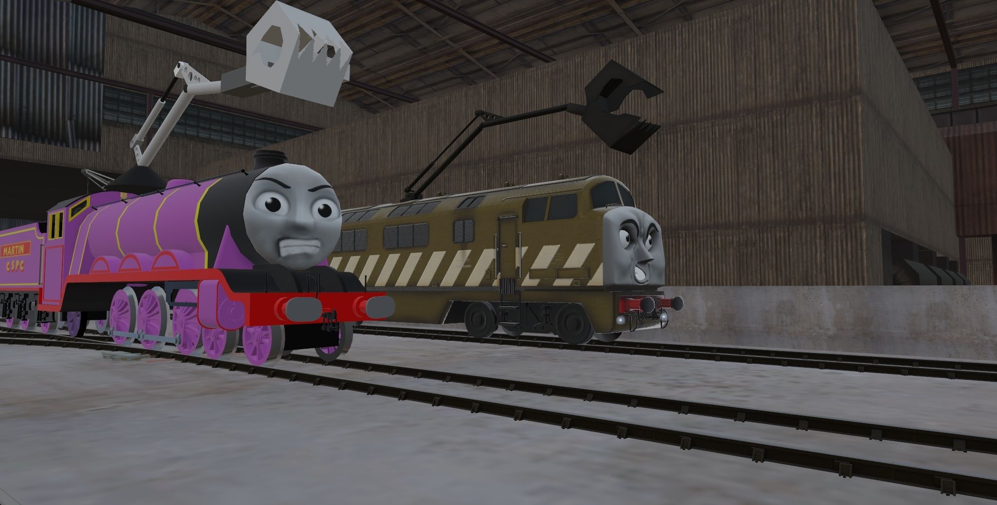 Tags: Trainz Railroad Simulator 2019, The Ironworks (Season 5 & 6), Test Run and filming section, Martin the Bad guy Engine with claw 1, Diesel 10 the Class 42 Warship, Martin's Tender, Scrap GWR King class tender, Scrap GWR/BR Castle class loco, Scrap GWR King class loco, Scrap GWR/BR Castle tender