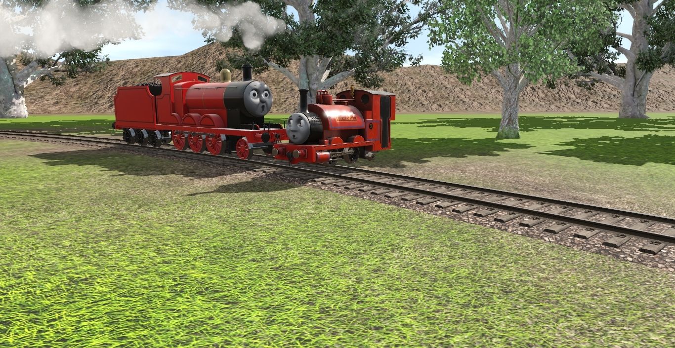 Tags: Trainz Railroad Simulator 2019, Standard & Narrow Gauge Test Route, Default, S4 - Sir Handel the Arrogant Engine, TTTE - James the red engine, TTTE - James's Tender