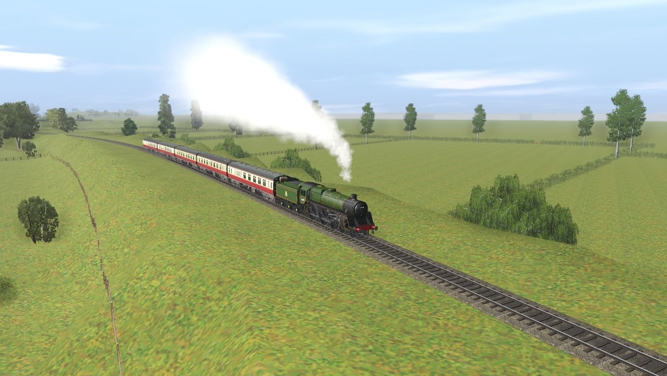 Tags: Trainz Railroad Simulator 2019, East Lincolnshire5h, BR Standard Class 5 (Green), BR Standard Tender BR1A (Green), BR Mk1 BCK Carmine, BR Mk1 SK Carmine, BR Mk1 CK Carmine, BR Mk1 BSO Carmine