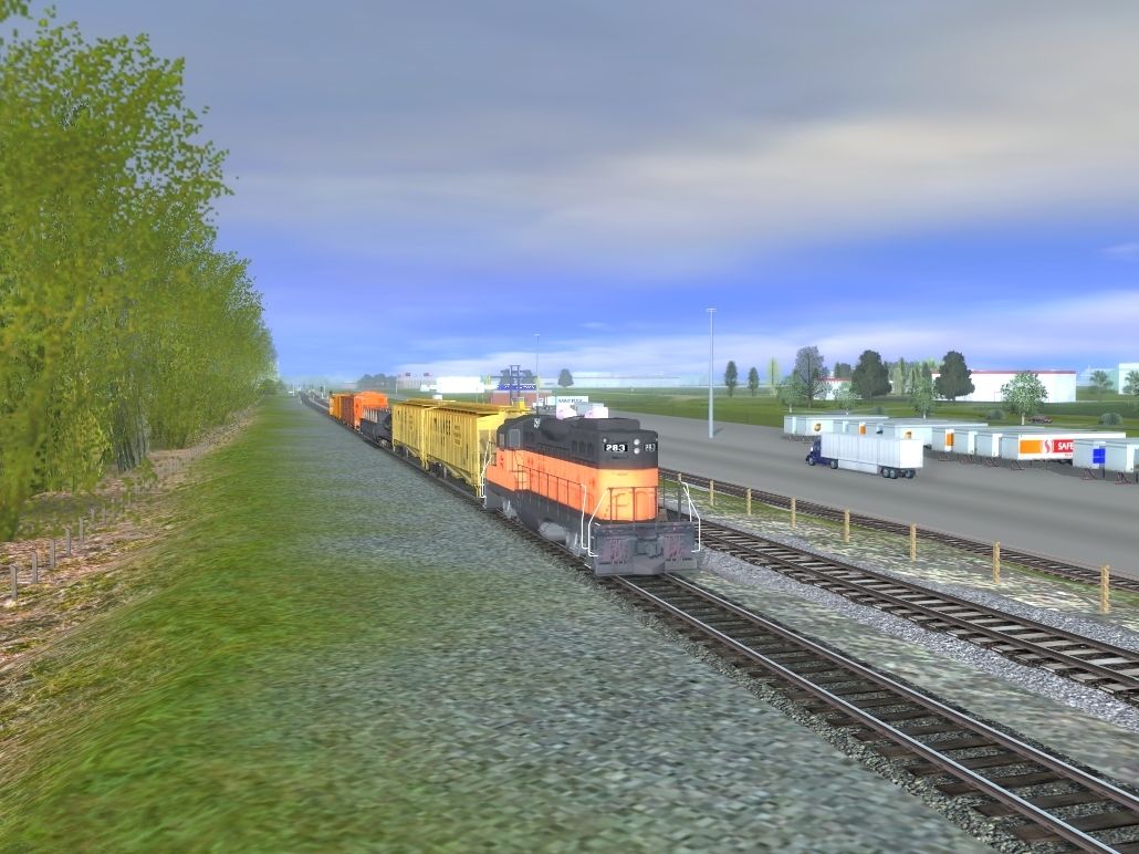 Tags: Trainz: A New Era, FDL Fond du Lac for T:ANE, FDL Thursday Late Patrol, MILW-GP9-283-001, Truck Kenworth 2 Primemover lefthand driver, LO MILW 100974, Tanker 40ft Dome UTLX 67544 LARS, Gondola ACF 50 Ton WB DES, MILW 2-Bay Cyl Cvd Hopper #109844 DES, Boxcar-wood-MILW SS, Boxcar PS-1 40 ft Union Pacific DES, MILW-Caboose-991269-01, Flatcar50ft Soo Line 5994 Ant, Flatcar50ft Milwaukee h#