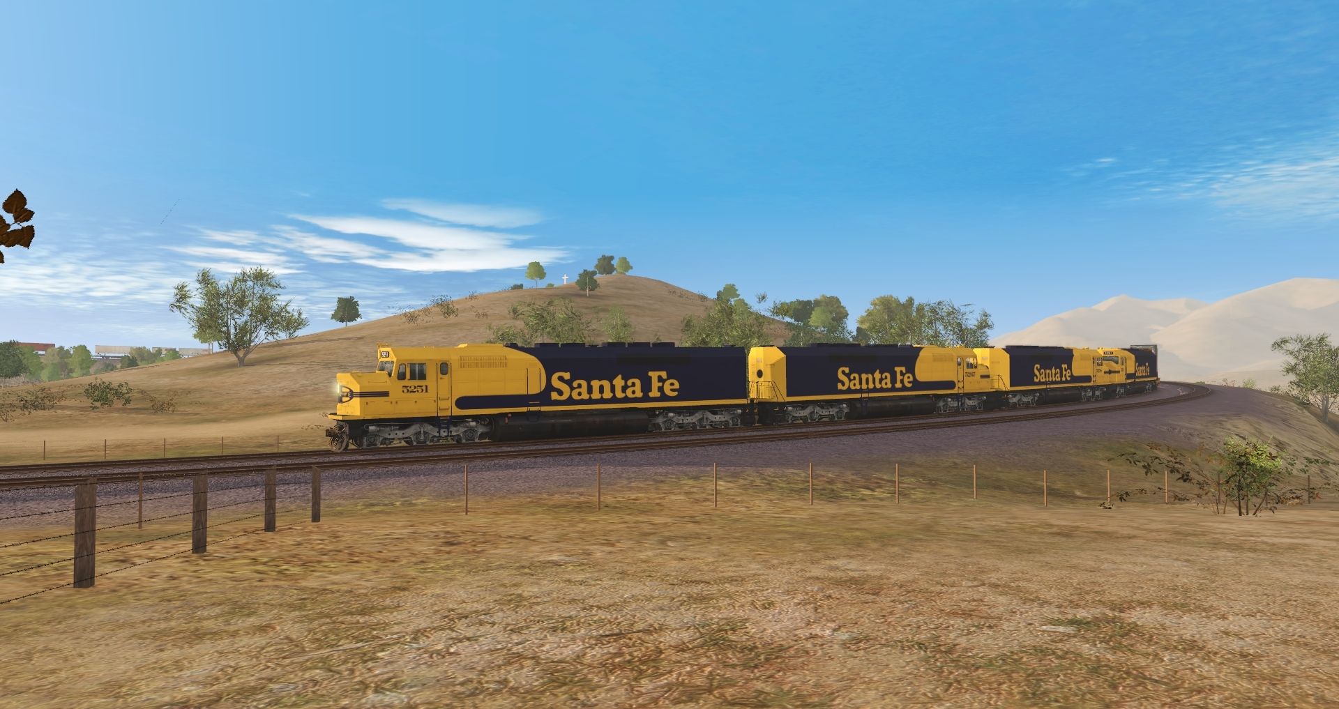 Tags: Trainz Railroad Simulator 2019, Mojave Sub Division, Default, ATSF SDF40-2 #5251, ATSF SDF40-2 #5267, ATSF SDF40-2 #5258, ATSF SDF40-2 #5261, ATSF Ce-11 Caboose, TTX Patched 89ft TOFC Flatcar, FEC Green 89ft TOFC Flatcar, TTX 89ft TOFC Flatcar, FEC Brown 89ft TOFC Flatcar