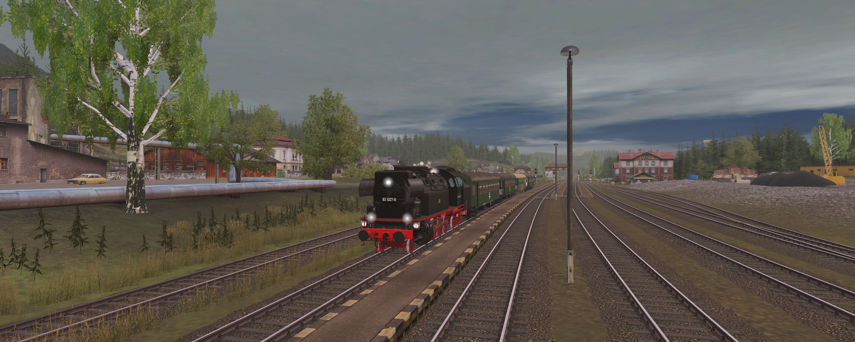 Tags: Trainz Railroad Simulator 2019, Boehmen Dez 2018, 25.03.22, DR Br 83 1027 Neubautenderlokomotive Br 83.10 DDR, DR Koef 2, BR58 REKO, DR Bghw REKO St.Gera, DR Bghw REKO St.Halle, DR Bghwe, DR Bghw REKO St.Chemnitz, DB Res-x079 31 80 3942 622-3, DB Tadgs 30 80 0824 103-3, DB z53, DB VTG Tanker Light