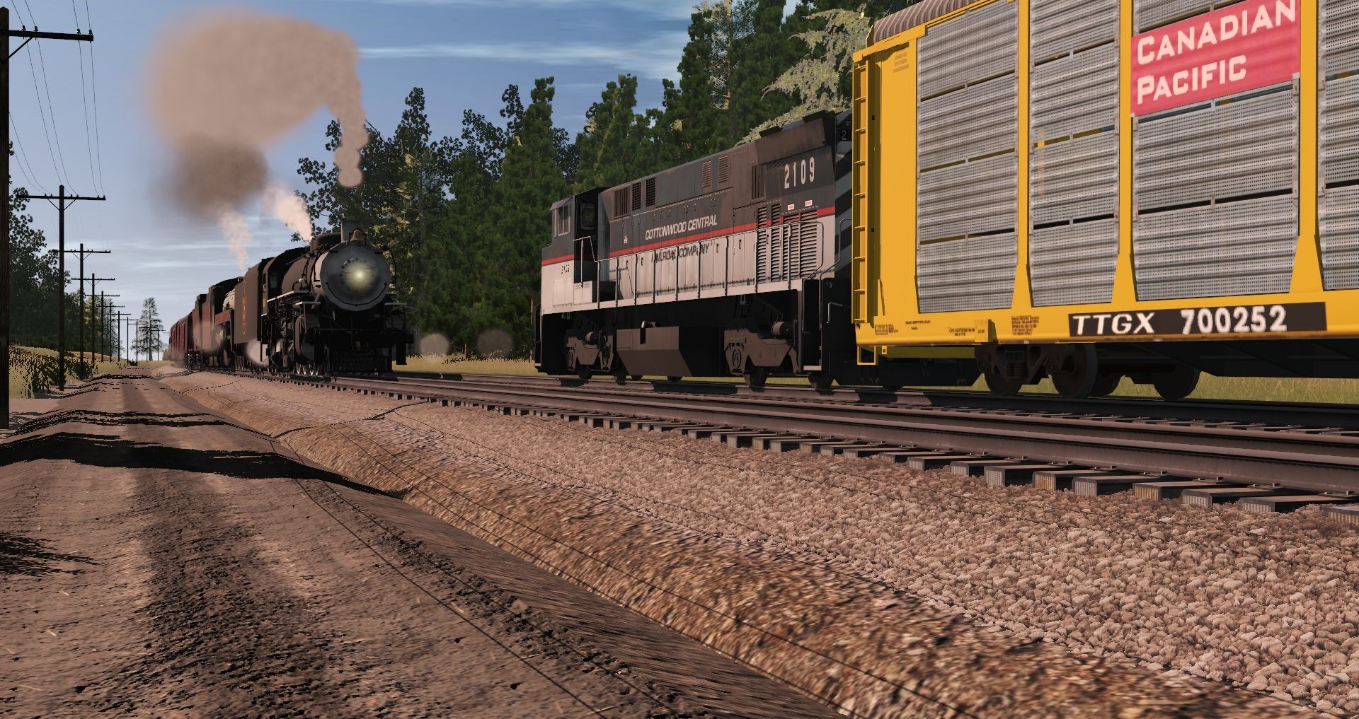 Tags: Trainz Railroad Simulator 2019, Plains Route (TRS19), Default, CCRR M420W, GTW K4a 5629 4-6-2 Engine V2 Updated, Canadian Pacific H1e 2860 Engine V2, Invisible loco, GE ES44AC CP 8760-8961, GTW K-4-a 5629 4-6-2 Pacific Tender V2, Canadian Pacific H1e 2860 Tender V4, Canadian Pacific H1e 2860 Tender V2 AUX, Coca Cola Tanker, BCOL Tool Car, WCRA Tool Car