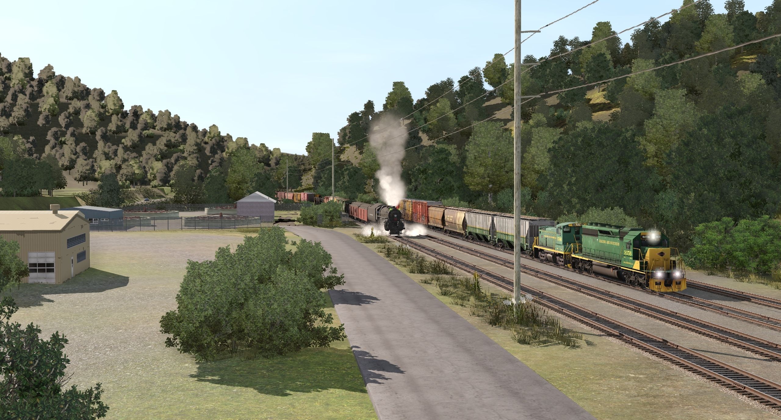 Tags: Trainz Railroad Simulator 2019, READING & NORTHERN TRS19 (pre-2020), RBMN SD40-2, RBMN SW1500 #1546, NYC J3 Hudson 5433 TEST 2, RBMN Trinity 3 Bay Hopper #9989, RBMN Trinity 3 Bay Hopper #9992, CSXT ex Chessie ACF Centerflow 3 Bay long hatch, NYC Niagara Tender, 60ft HC Boxcar UP, PRR Baggage B60 1939 REA, 60ft HC Boxcar TTX Ver1, ACE 3000 614T Tool Car