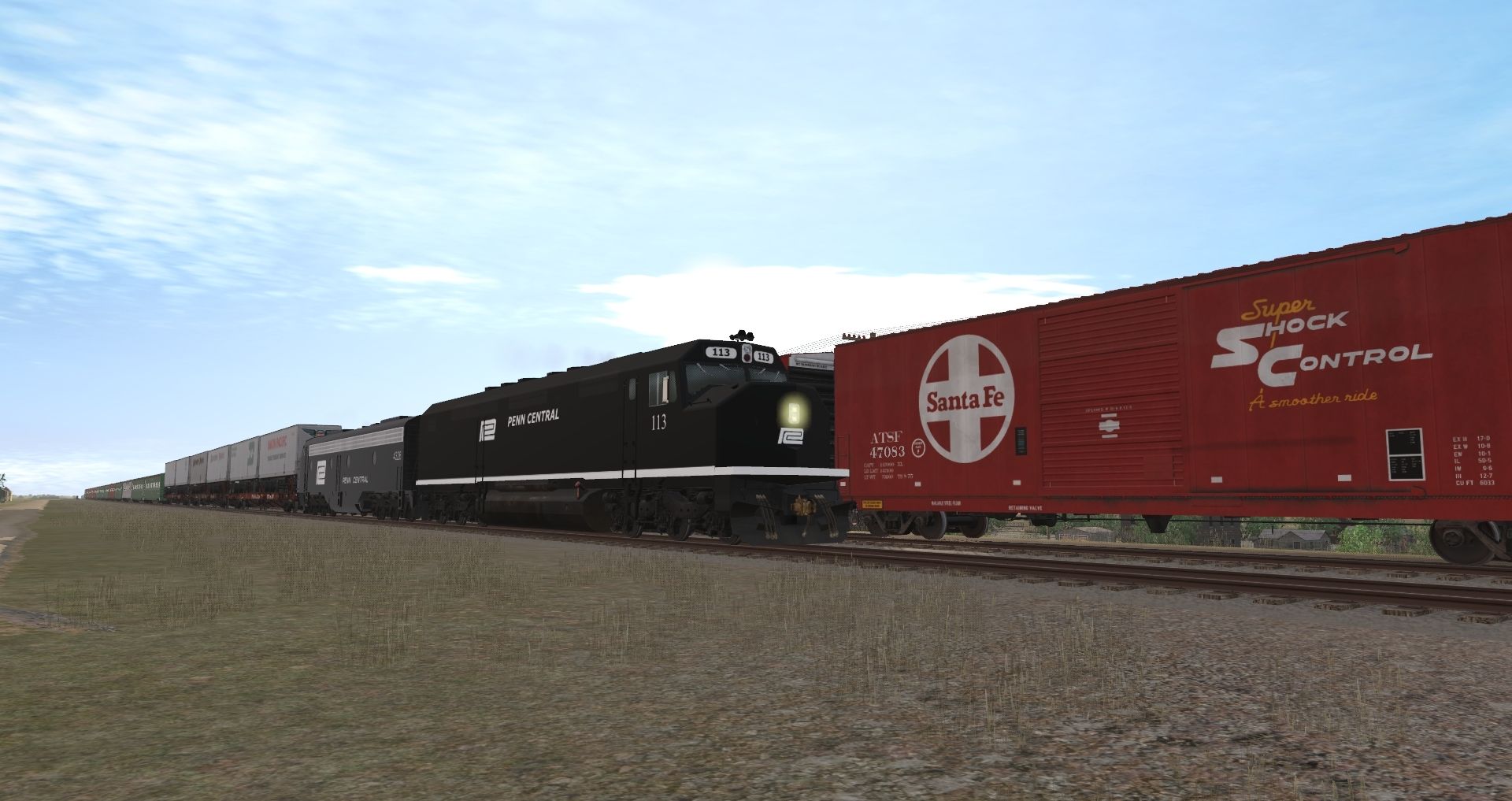 Tags: Trainz Railroad Simulator 2019, Season Town Northern RR, Default, PC EMD SDP40F 113, EMD E8 Penn Central #4326, CPR HH SD45 ph2a3 M, TUME-71402177-SD40-2-UP, ACL 50' PS-1, ATSF 50' PC&F 6033 Bx-127 (1970s), 60ft WoodChip SCL 2, 60ft WoodChip SCL 1, PS: TTX 85' Flatcar, 40ft Stockcar C&O 95188 Ant, PS: TTX 85' Flatcar - 1