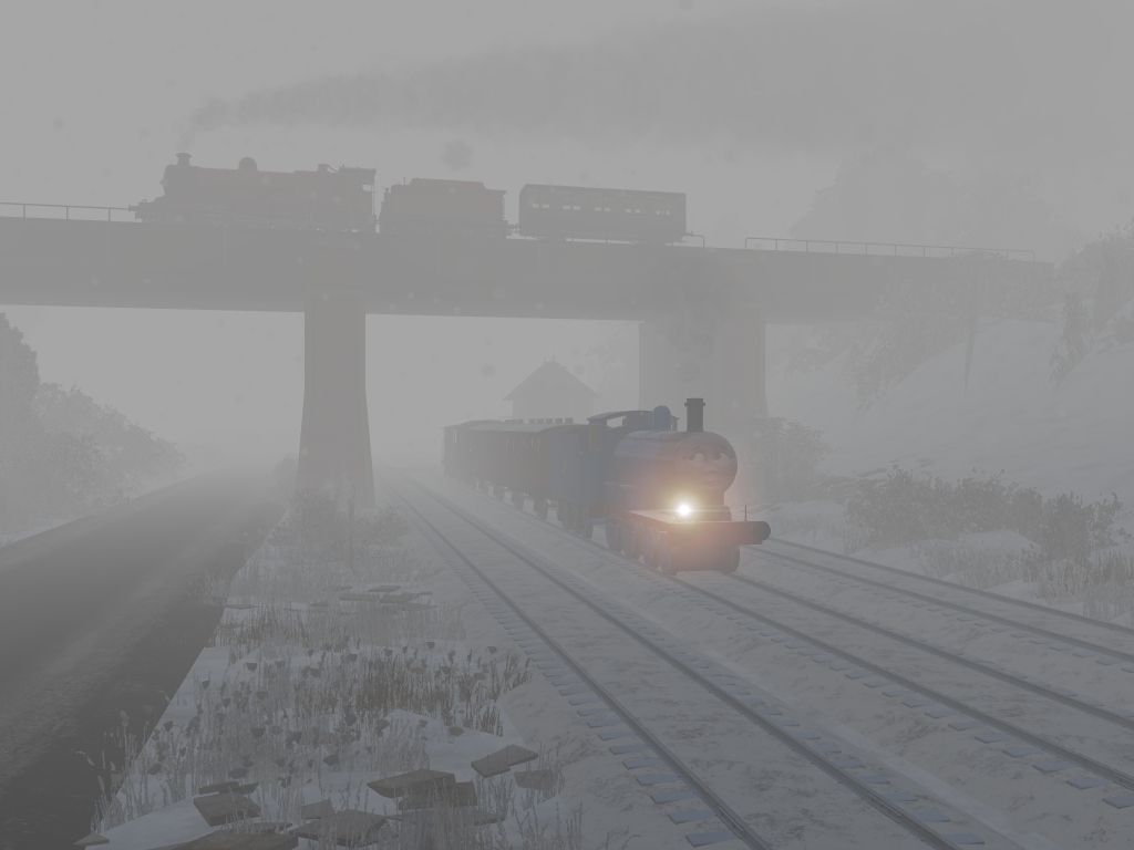 Tags: Trainz Railroad Simulator 2019, IoS - The Kellsthorpe Extension Snow 2.0, Engieman's - Edward The Blue Engine (TVS) TS19, NWR - Alled Greedy (Alled Greedy), NWR - Alled Greedy's Tender, Engieman's - Edward's Tender (TVS) TS19, Engie's - TVS Red Branchline Coach (3rd Composite) (TS19), Engie's - TVS Red Branchline Coach (3rd Brake) (TS19), TTTE - Old Coach 1st Class Composite, Engie's - TVS GWR Ventilated Van (TS19), Engie's - TVS BR 20T Brakevan Type 1 (TS19)