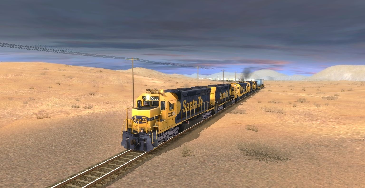 Posted by: Dashboy22 | Posted:2022-04-02 13:17:01 Caption: Tags: Trainz: A New Era, Desert Wood, ATSF SD45, ATSF C30-7, TTX Patched 89ft TOFC Flatcar