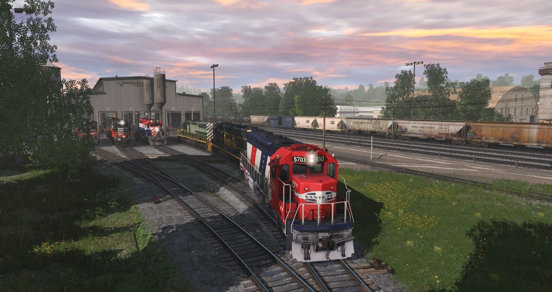 Tags: Trainz Railroad Simulator 2019, Tidewater Point Rail Mod., Tidewater Point Rail Mod. - Default, ATSF SD45-2 Bicentennial, ATSF SD45-2 blue/yellow stripe, BCR SD40-2 2 tone, BCI SD60 # 3802, BCR SD40-2 RWB ph1, BCI MP2800/C, BCI SD60 # 3803, FMRR U33C, CSX AC4400CW YN2 4-9, SOO SD40-2 Late V1, JRPX GP7