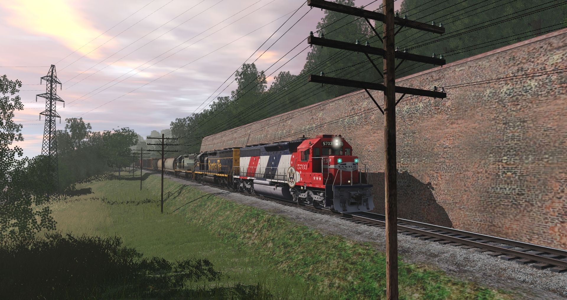 Tags: Trainz Railroad Simulator 2019, Tidewater Point Rail Mod., Tidewater Point Rail Mod. - Default, ATSF SD45-2 Bicentennial, ATSF SD45-2 blue/yellow stripe, BCR SD40-2 2 tone, JR Cylindrical Hoppern NMIX, JR Cylindrical Hoppern CSX dirty, JR Cylindrical Hoppern CSX clean 1, 73ft Centerbeam TTX 3, 73ft Centerbeam BCIT, BNSF 60Ft.9In. woodchip gondola 00's dirty, BNSF 62Ft. Bulkhead, BN ACF Centerflow 3 Bay long hatch