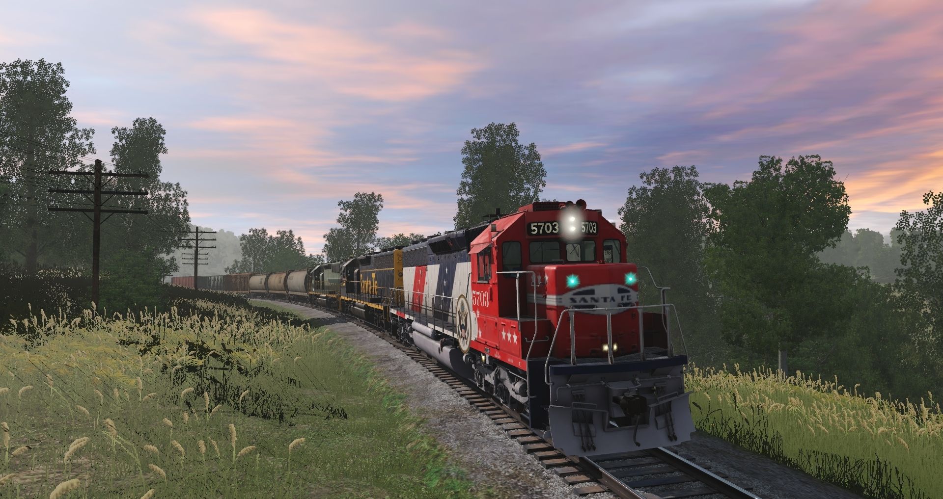 Tags: Trainz Railroad Simulator 2019, Tidewater Point Rail Mod., Tidewater Point Rail Mod. - Default, ATSF SD45-2 Bicentennial, ATSF SD45-2 blue/yellow stripe, BCR SD40-2 2 tone, JR Cylindrical Hoppern NMIX, JR Cylindrical Hoppern CSX dirty, JR Cylindrical Hoppern CSX clean 1, 73ft Centerbeam TTX 3, 73ft Centerbeam BCIT, BNSF 60Ft.9In. woodchip gondola 00's dirty, BNSF 62Ft. Bulkhead, BN ACF Centerflow 3 Bay long hatch